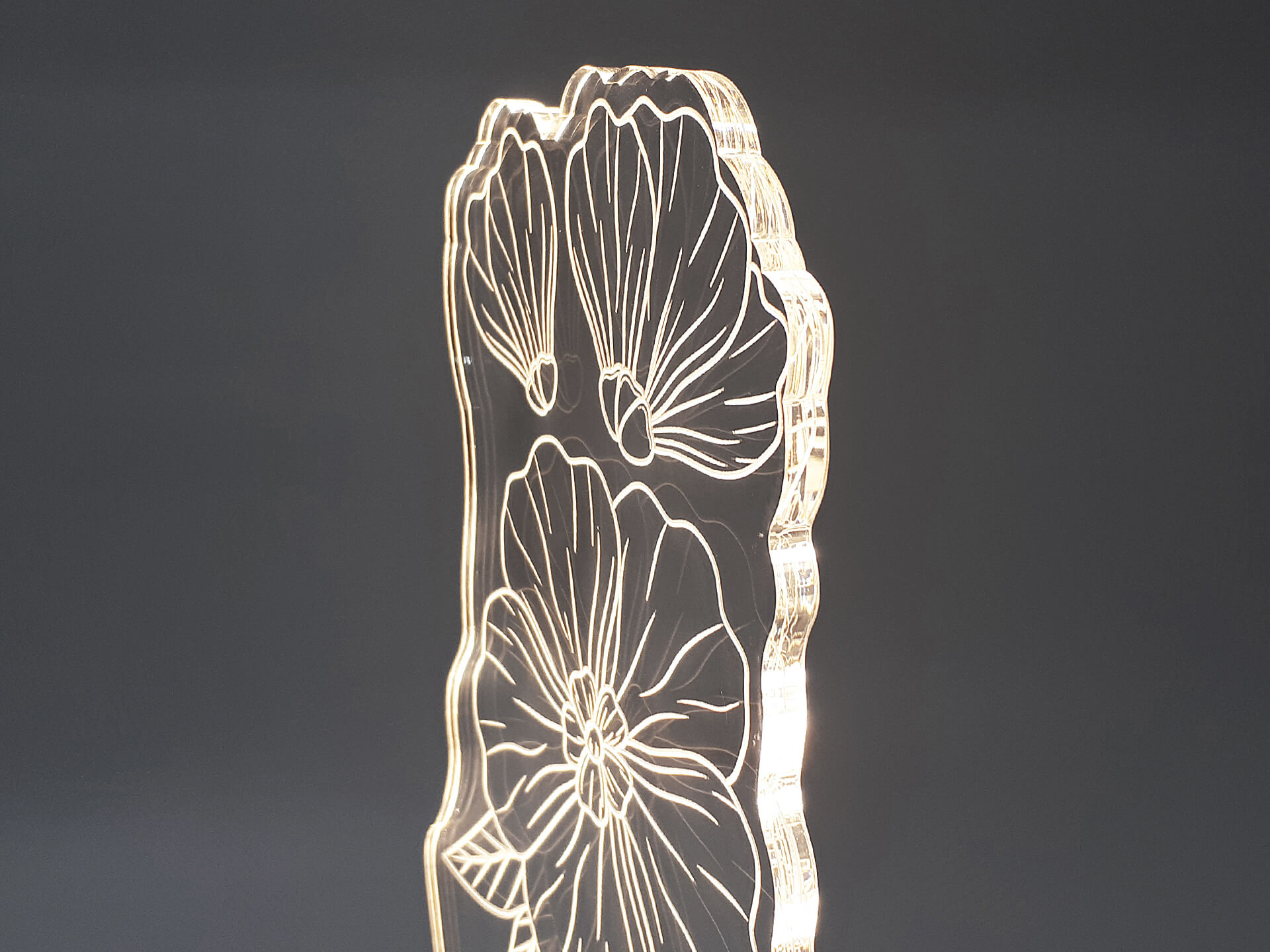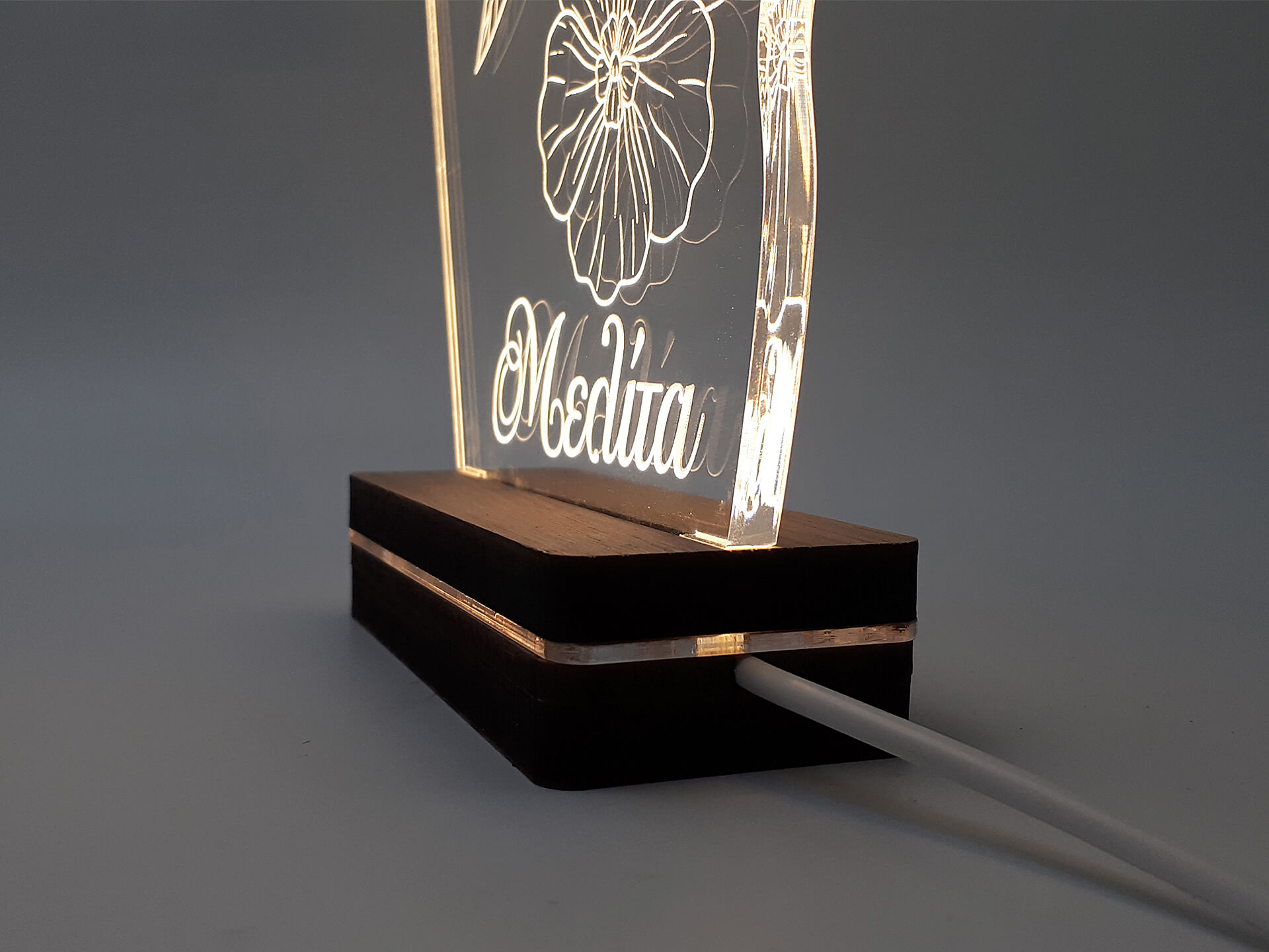• Υλικά: Led λευκού χρώματος, Ακρυλικό διάφανο πάχους 6mm, Χειροποίητη βάση από ξύλο και ακρυλικό