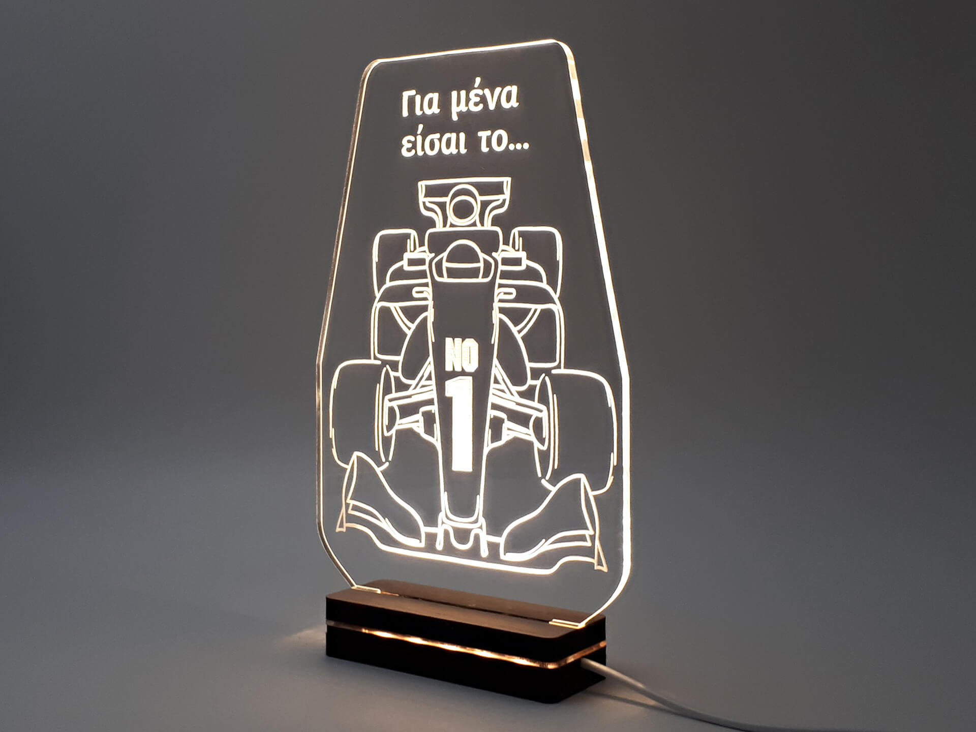 • Υλικά: Led λευκού χρώματος, Ακρυλικό διάφανο πάχους 6mm, Χειροποίητη βάση από ξύλο και ακρυλικό