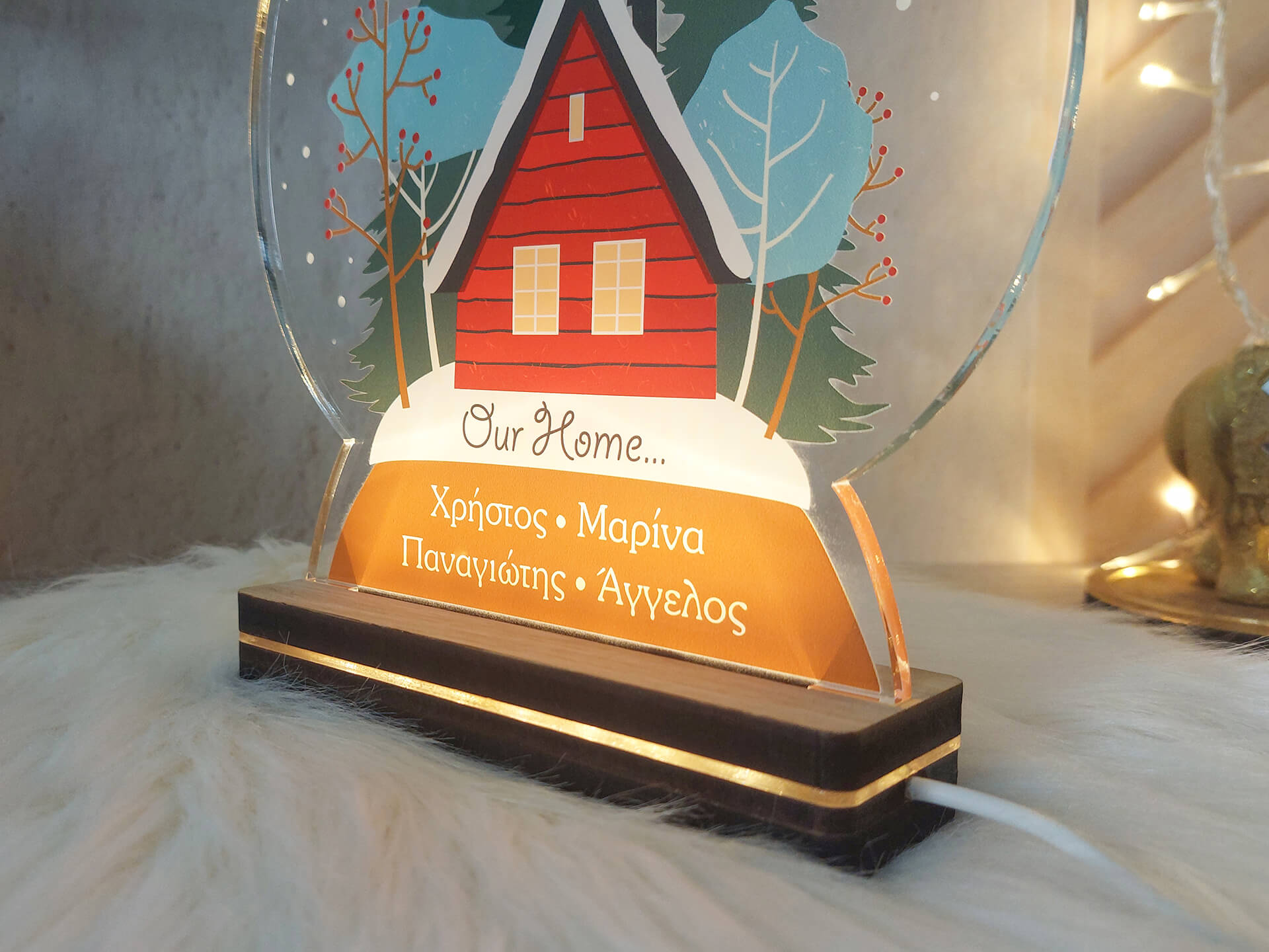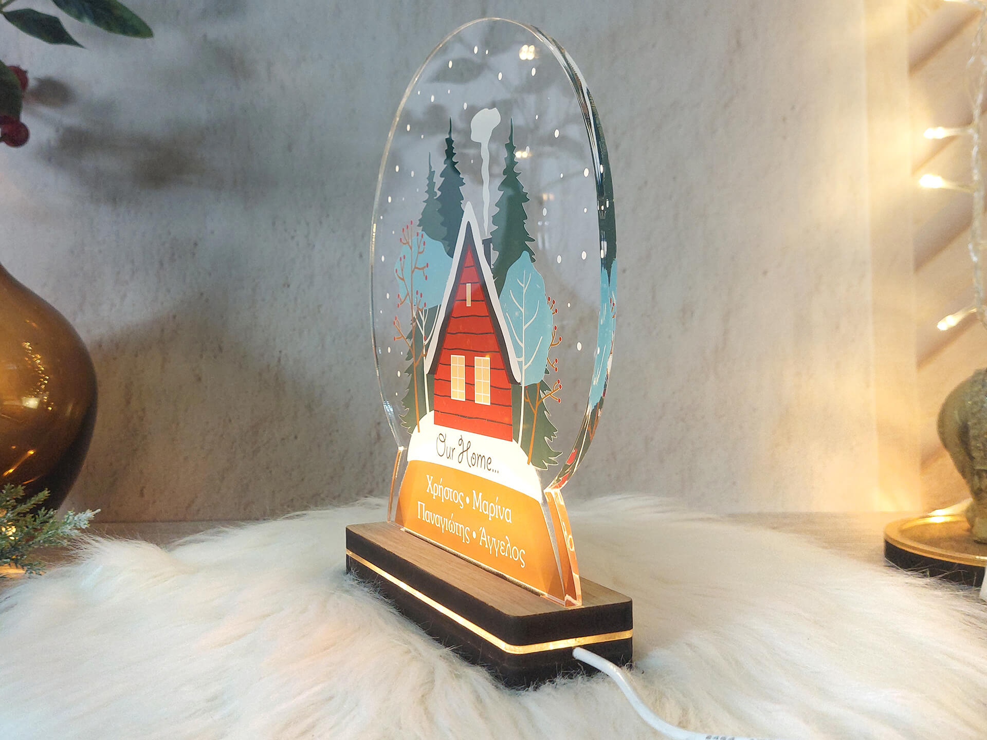 • Υλικά: Led λευκού χρώματος, Ακρυλικό διάφανο πάχους 6mm, Χειροποίητη βάση από ξύλο και ακρυλικό