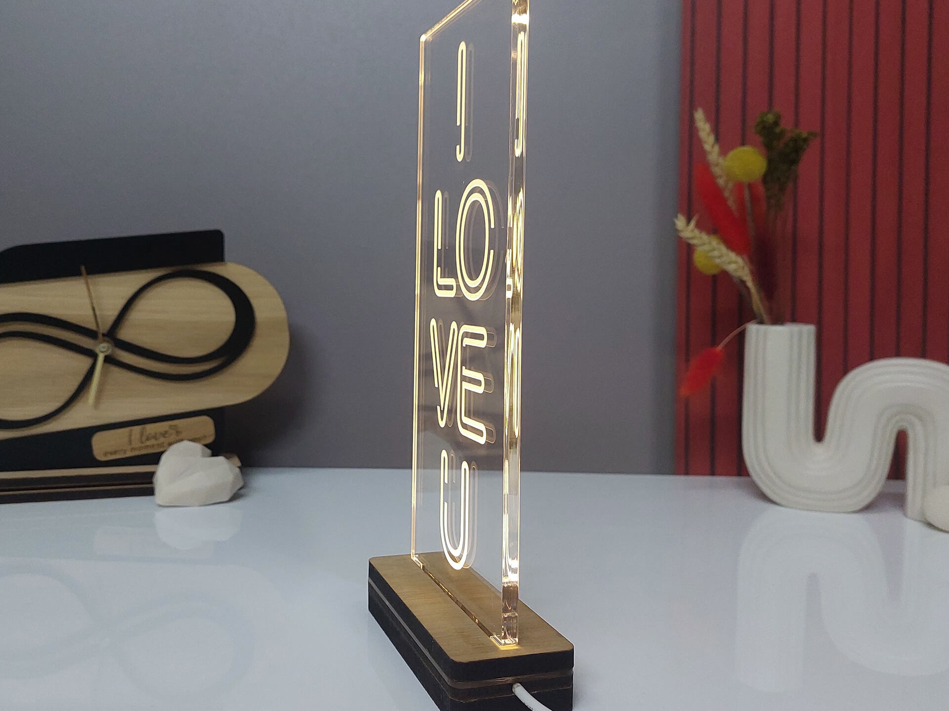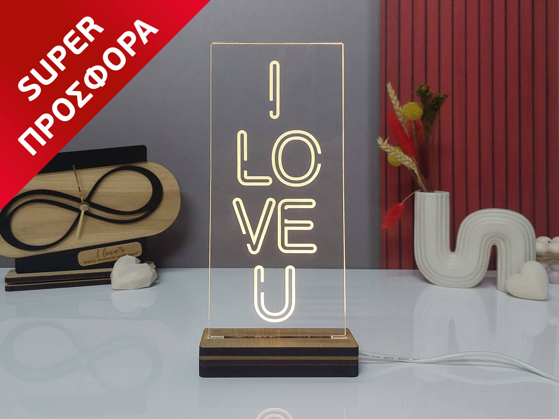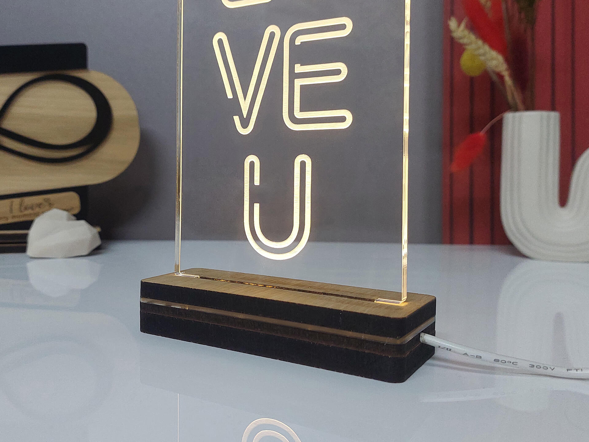 • Υλικά: Led λευκού χρώματος, Ακρυλικό διάφανο πάχους 6mm, Χειροποίητη βάση από ξύλο και ακρυλικό
