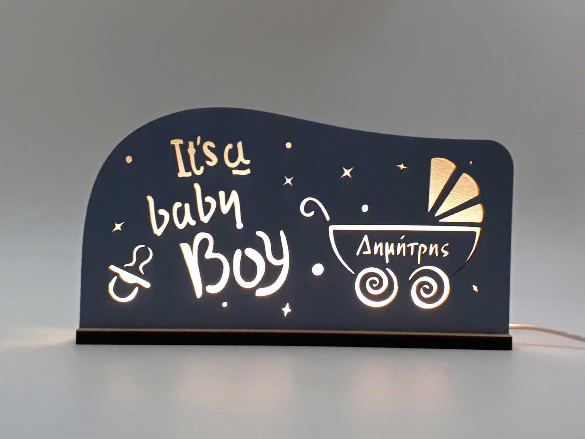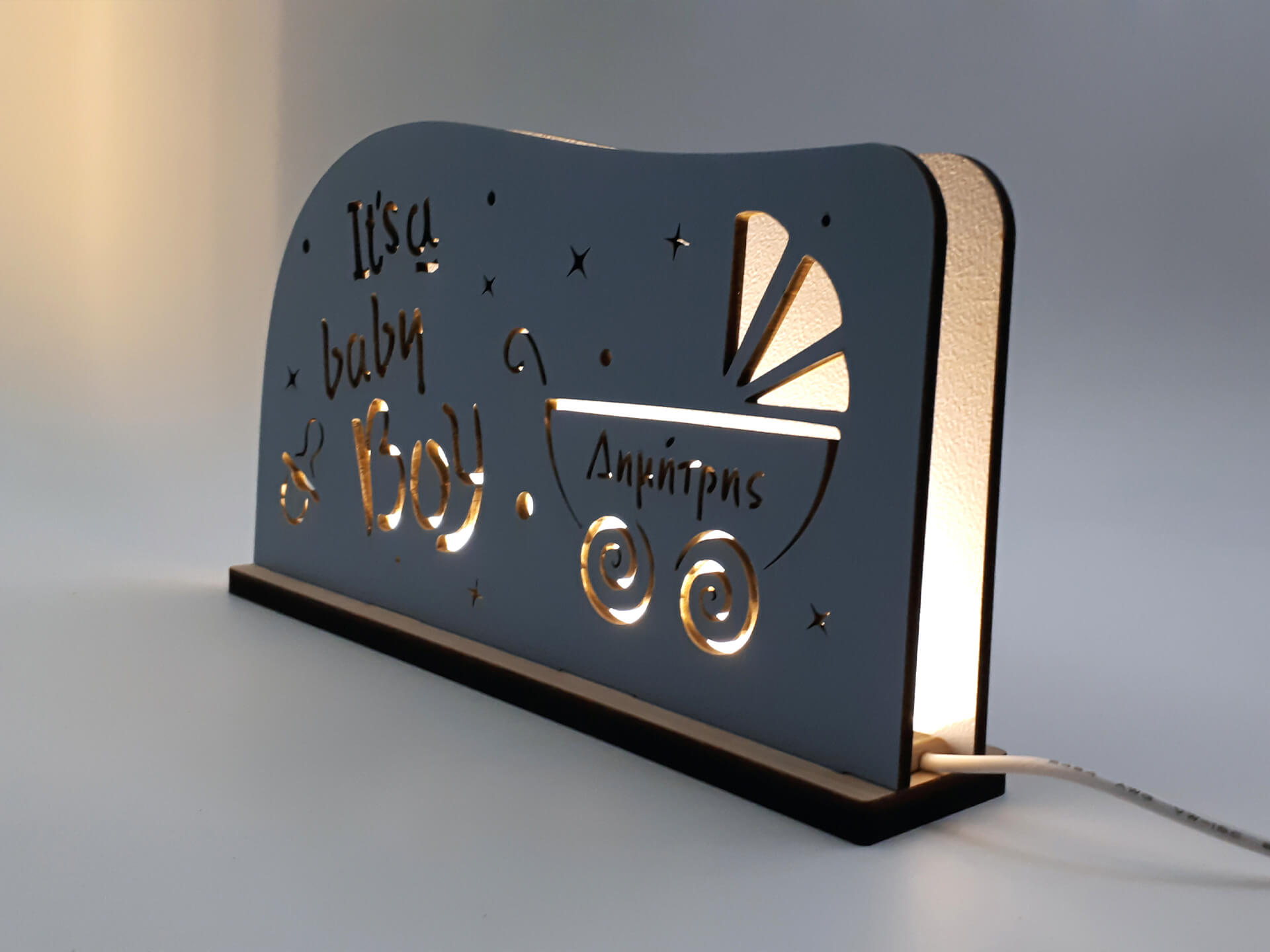 Πρωτότυπο φωτιστικό με το όνομα του μωρού σας για τη διακόσμηση του παιδικού δωματίου. Η καλύτερη επιλογή για να φωτίζει τις νύχτες του!