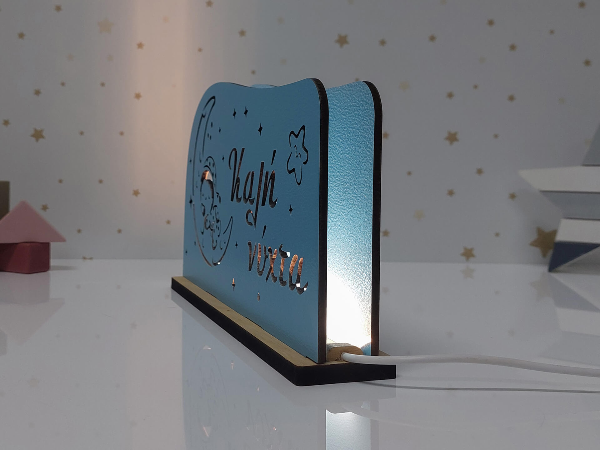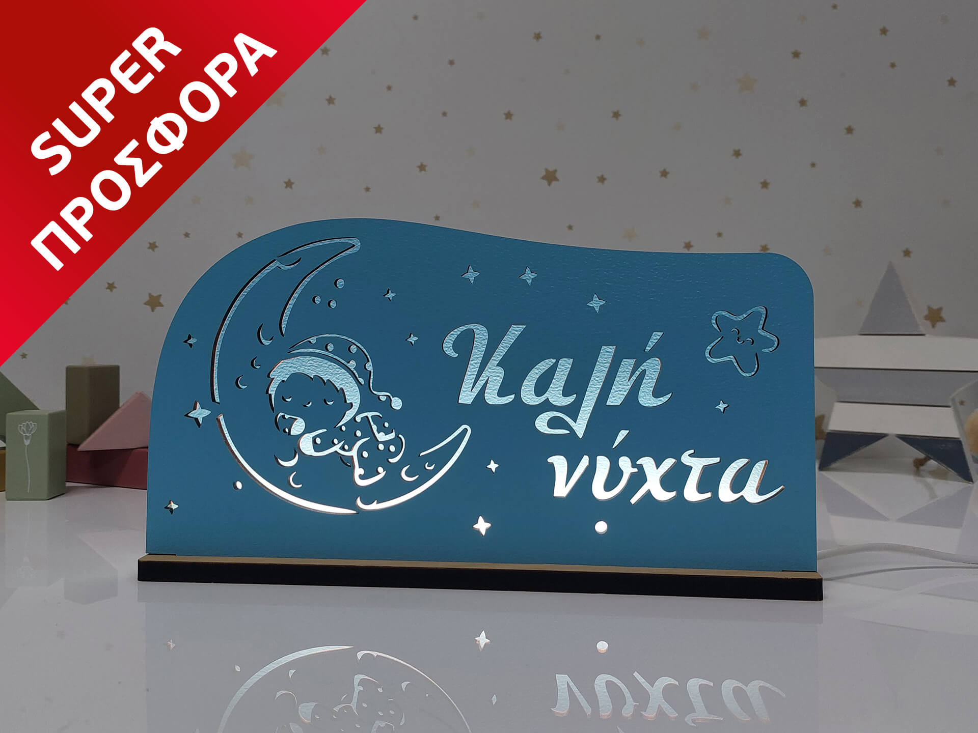 Πρωτότυπο φωτιστικό με θέμα Καλή νύχτα για τη διακόσμηση του παιδικού δωματίου. Η καλύτερη επιλογή για να φωτίζει τις νύχτες του!