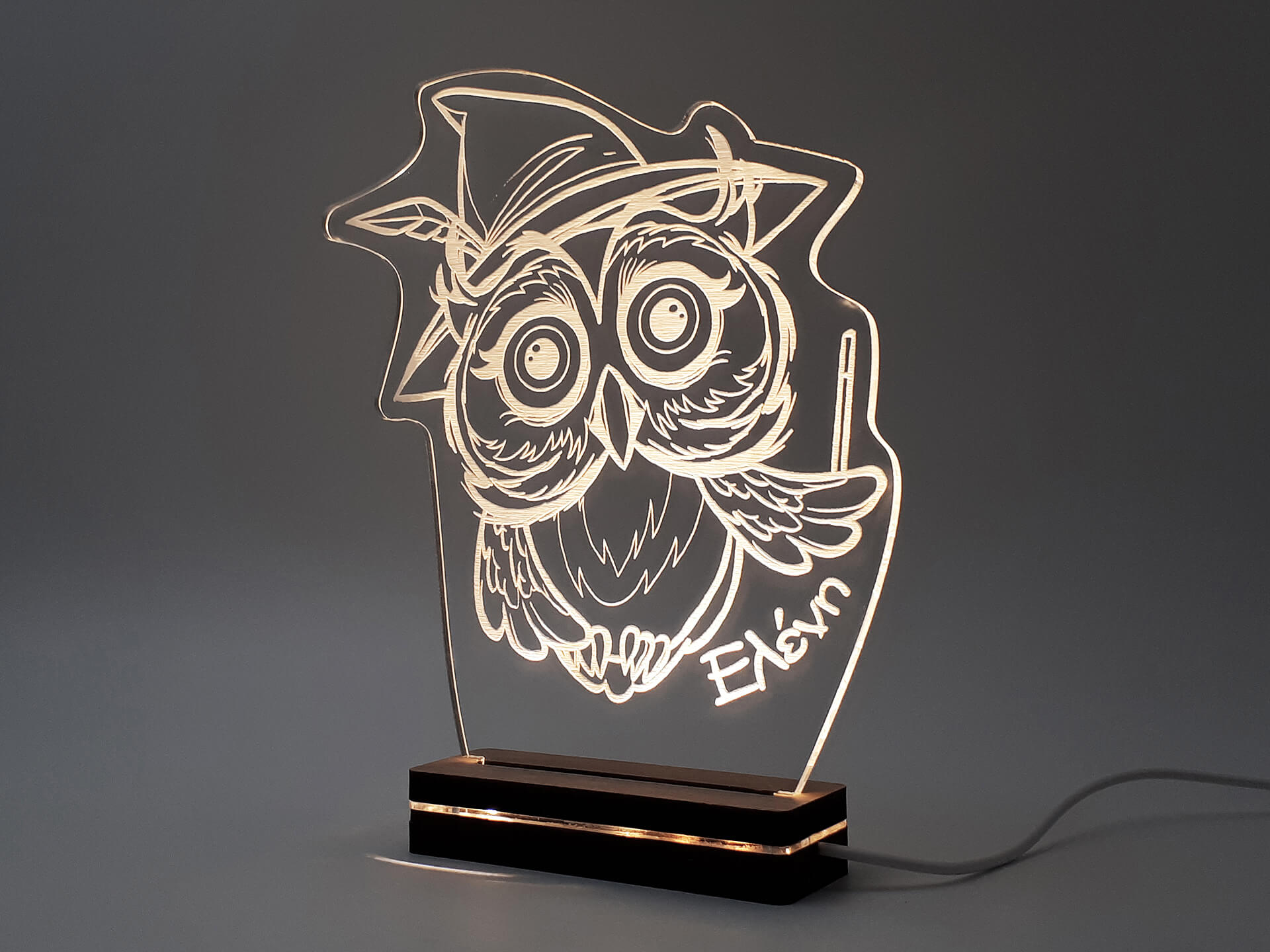 • Υλικά: Led λευκού χρώματος, Ακρυλικό διάφανο πάχους 6mm, Χειροποίητη βάση από ξύλο και ακρυλικό