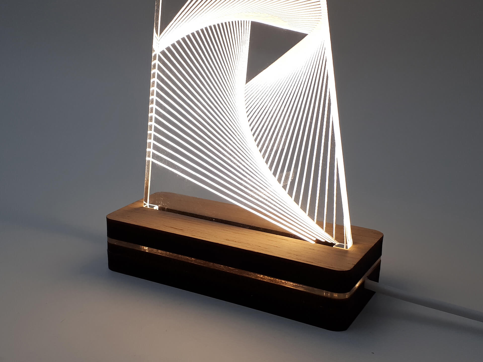 • Υλικά: Led λευκού χρώματος, Ακρυλικό διάφανο πάχους 6mm, Χειροποίητη βάση από ξύλο και ακρυλικό