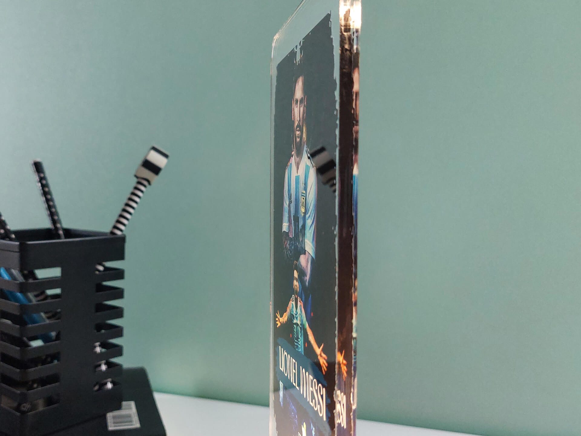 • Υλικά: Led λευκού χρώματος, Ακρυλικό διάφανο πάχους 6mm, Χειροποίητη βάση από ξύλο και ακρυλικό