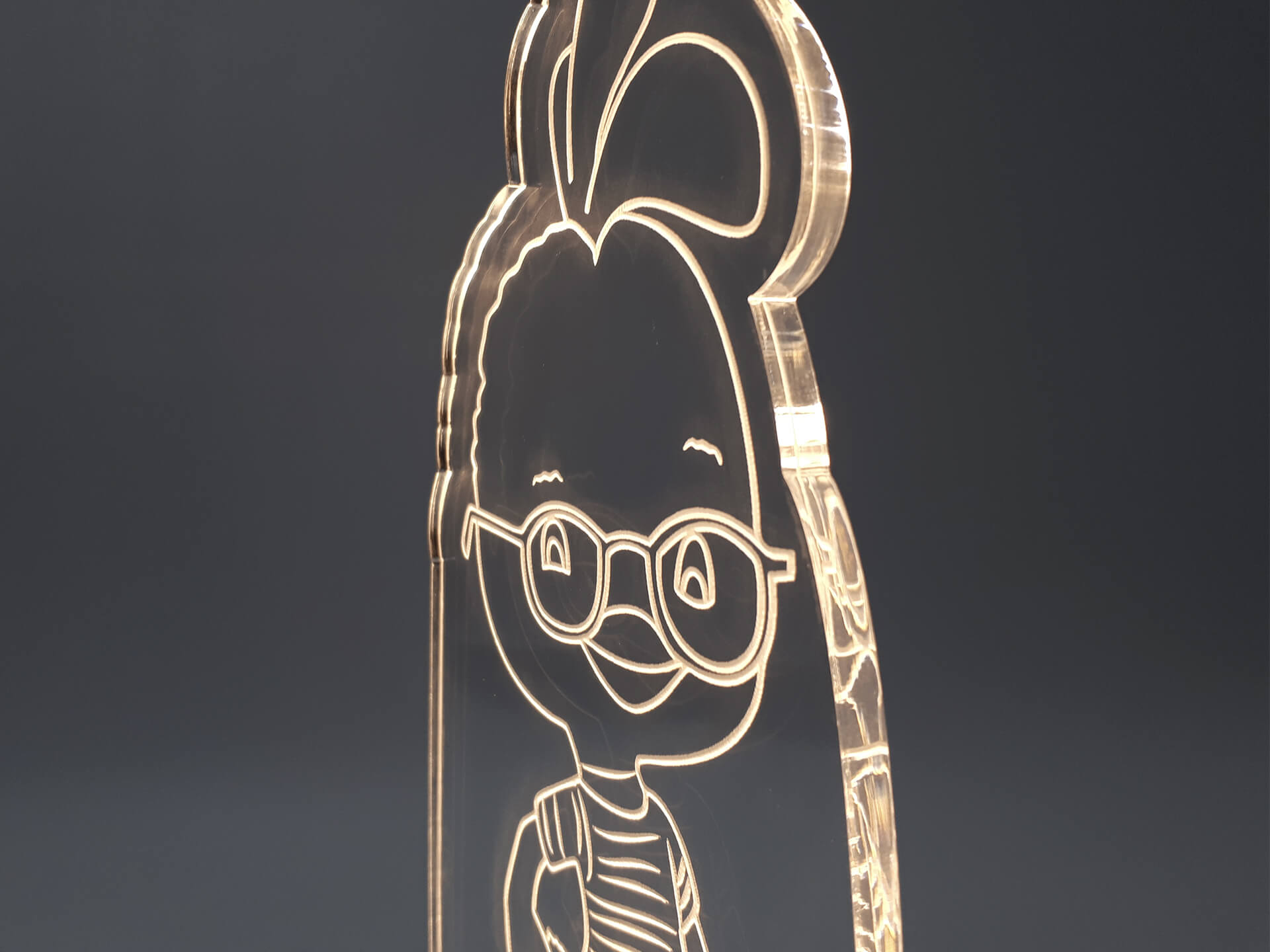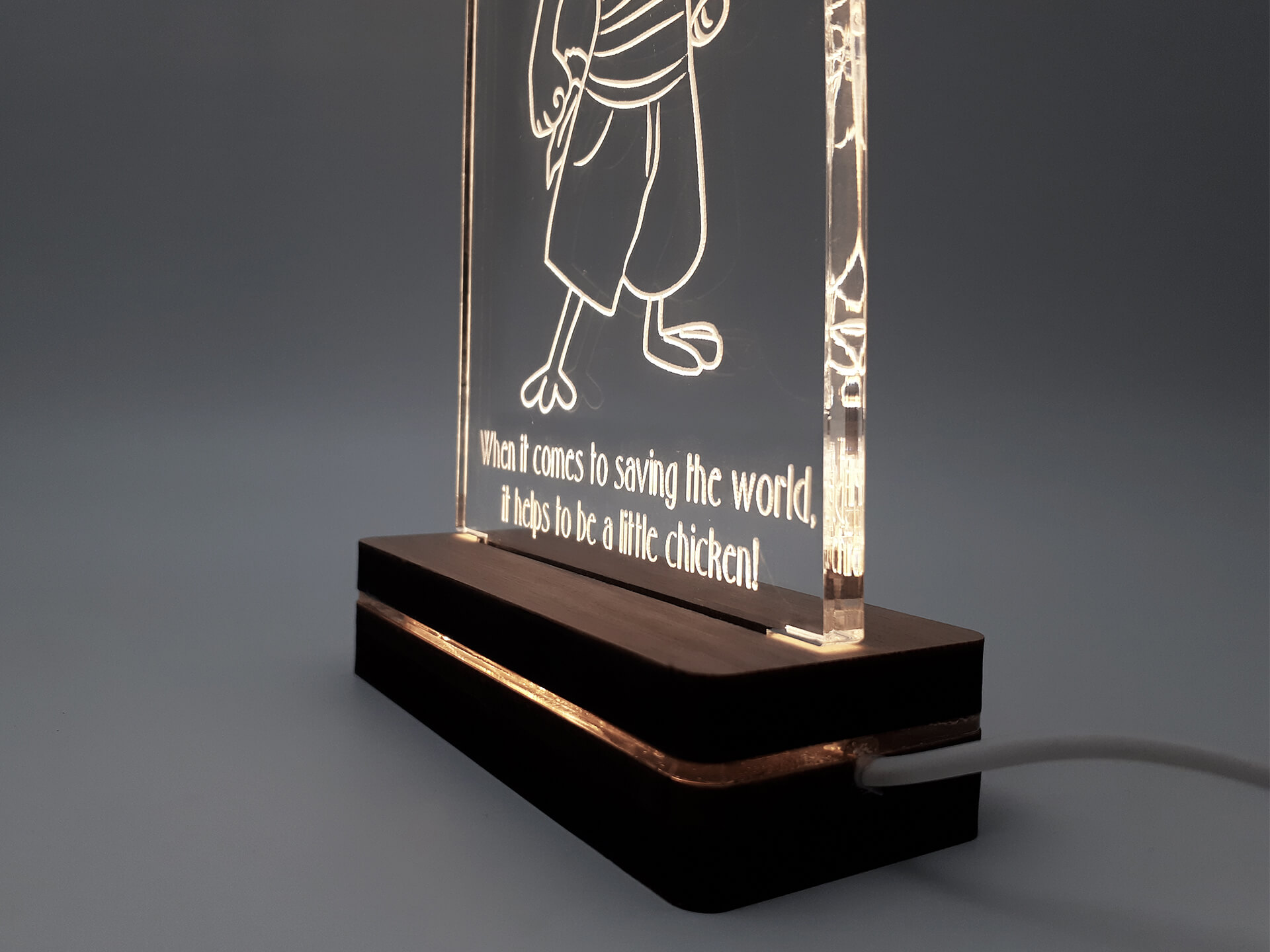 • Υλικά: Led λευκού χρώματος, Ακρυλικό διάφανο πάχους 6mm, Χειροποίητη βάση από ξύλο και ακρυλικό