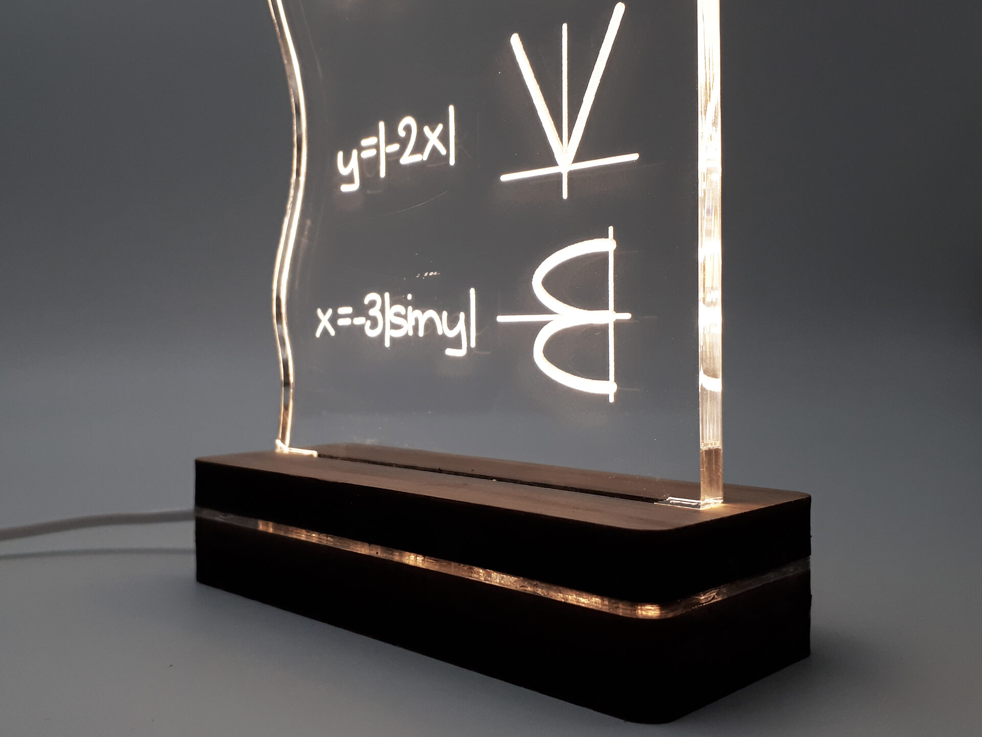 Φωτιστικό Led από ακρυλικό και ξύλινη χειροποίητη βάση δικής μας πρωτοποριακής σχεδίασης και κατασκευής.