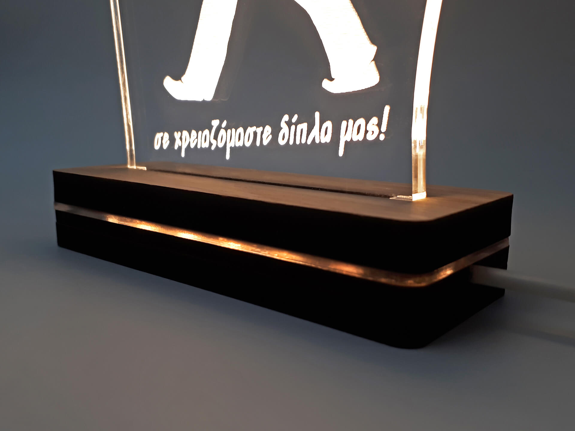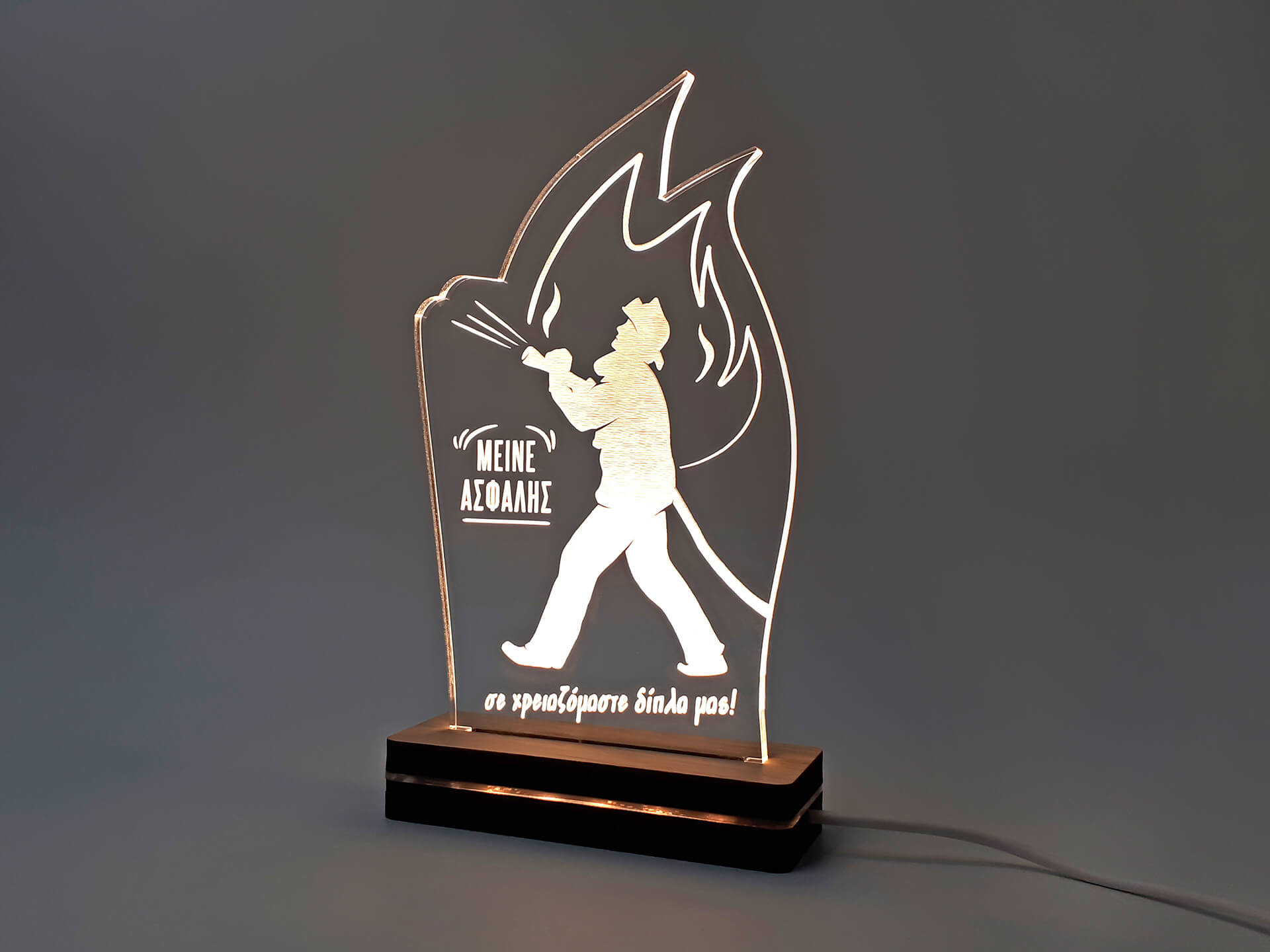 Μια γλυκιά υπενθύμιση της εκτίμησης και της αγάπης μας για τους ήρωες που εργάζονται καθημερινά για να μας προστατεύουν! Φωτιστικό Led από ακρυλικό και ξύλινη χειροποίητη βάση δικής μας πρωτοποριακής σχεδίασης και κατασκευής.