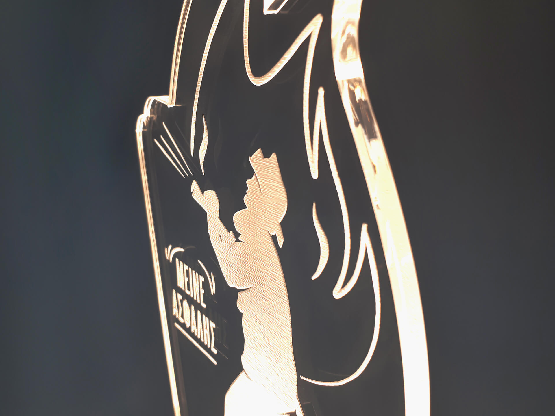 • Υλικά: Led λευκού χρώματος, Ακρυλικό διάφανο πάχους 6mm, Χειροποίητη βάση από ξύλο και ακρυλικό