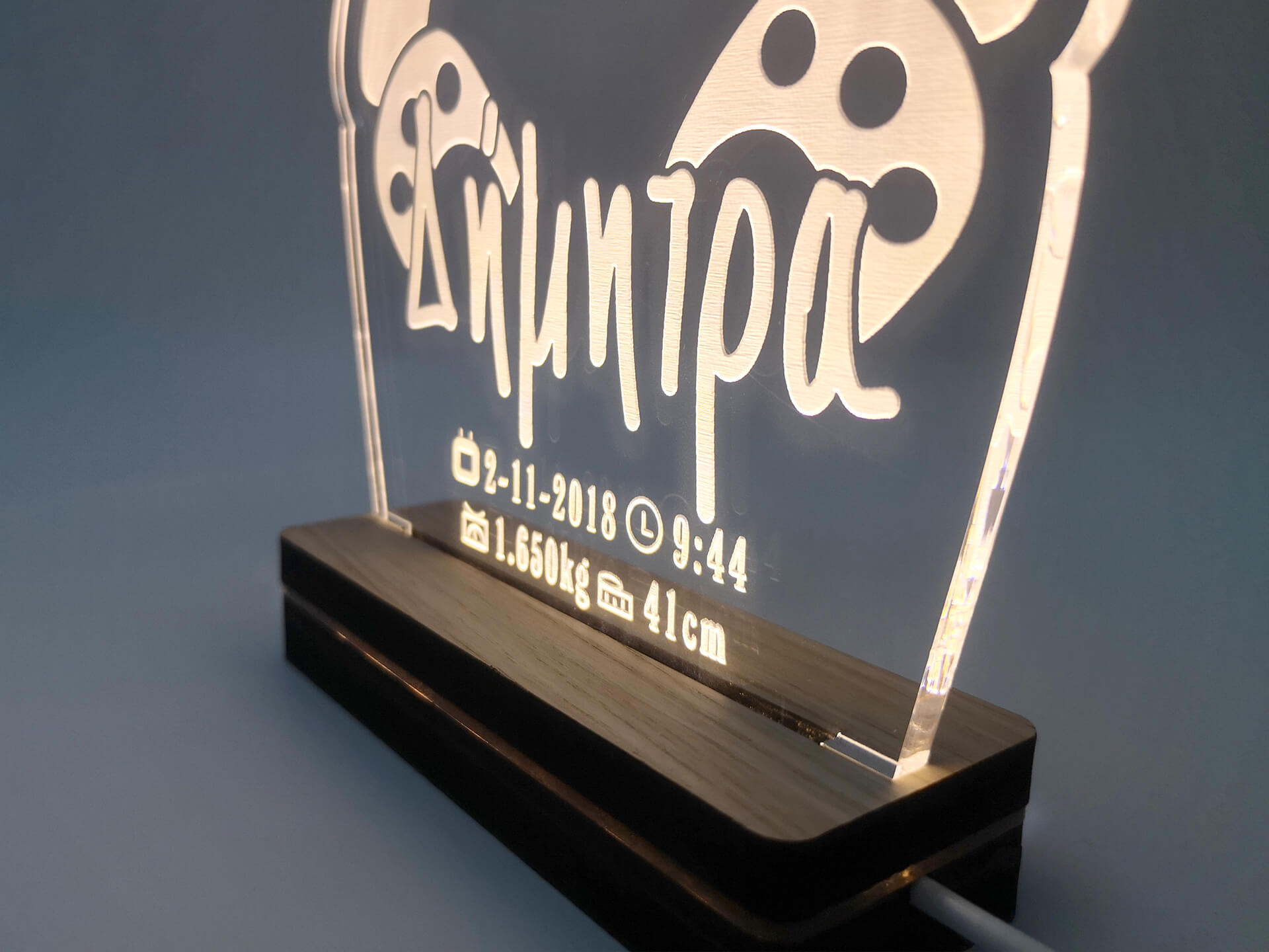 Κρατήστε τα στοιχεία γέννησης του μωρού σας φωτεινά! Πρωτότυπο φωτιστικό με πάντα για να διακοσμήσετε το δωμάτιο του μωρού σας ή μπορείτε να το κάνετε δώρο σε νέους γονείς με τον ερχομό του νέου μέλους!