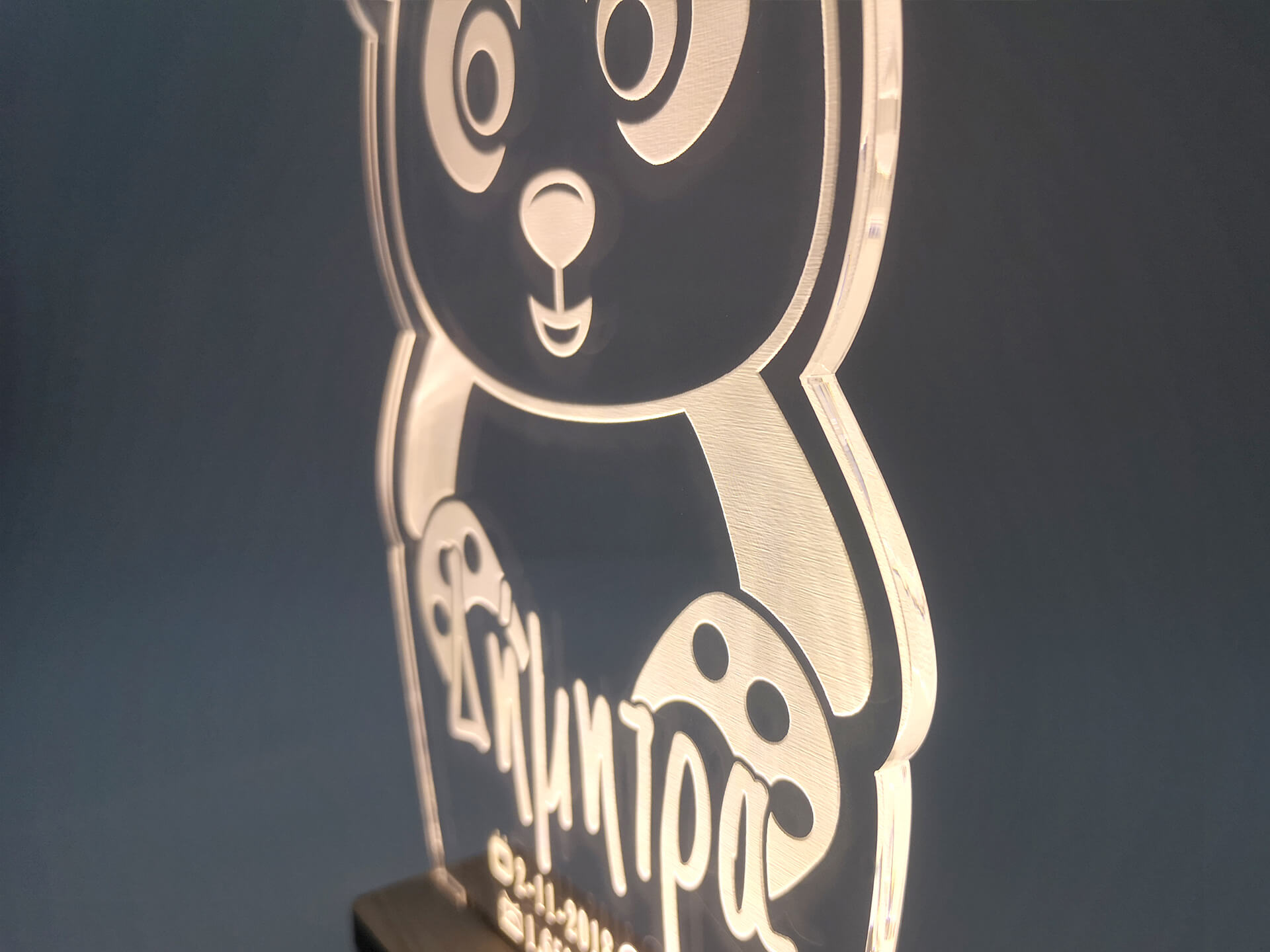 • Υλικά: Led λευκού χρώματος, Ακρυλικό διάφανο πάχους 6mm, Χειροποίητη βάση από ξύλο και ακρυλικό