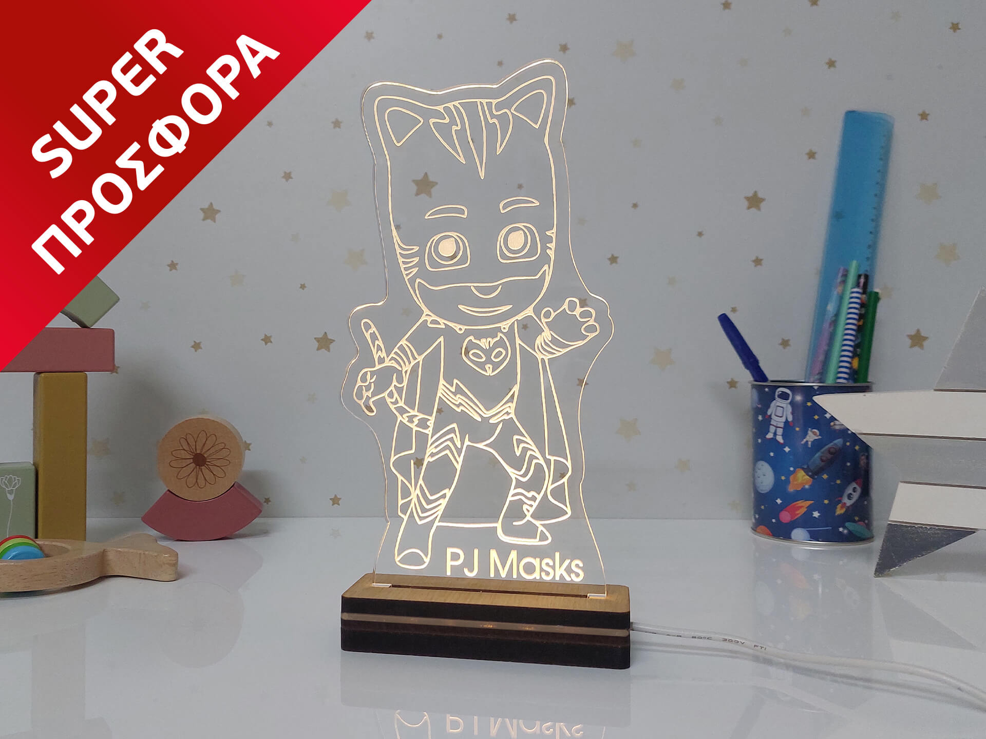 • Υλικά: Led λευκού χρώματος, Ακρυλικό διάφανο πάχους 6mm, Χειροποίητη βάση από ξύλο και ακρυλικό