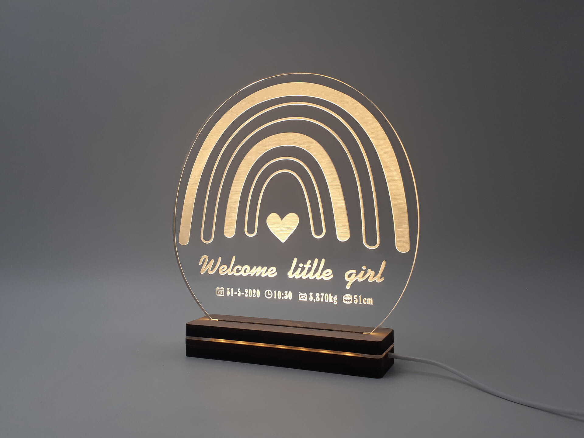 Κρατήστε τα στοιχεία γέννησης του μωρού σας φωτεινά! Πρωτότυπο φωτιστικό ουράνιο τόξο για να διακοσμήσετε το δωμάτιο του μωρού σας ή μπορείτε να το κάνετε δώρο σε νέους γονείς με τον ερχομό του νέου μέλους!