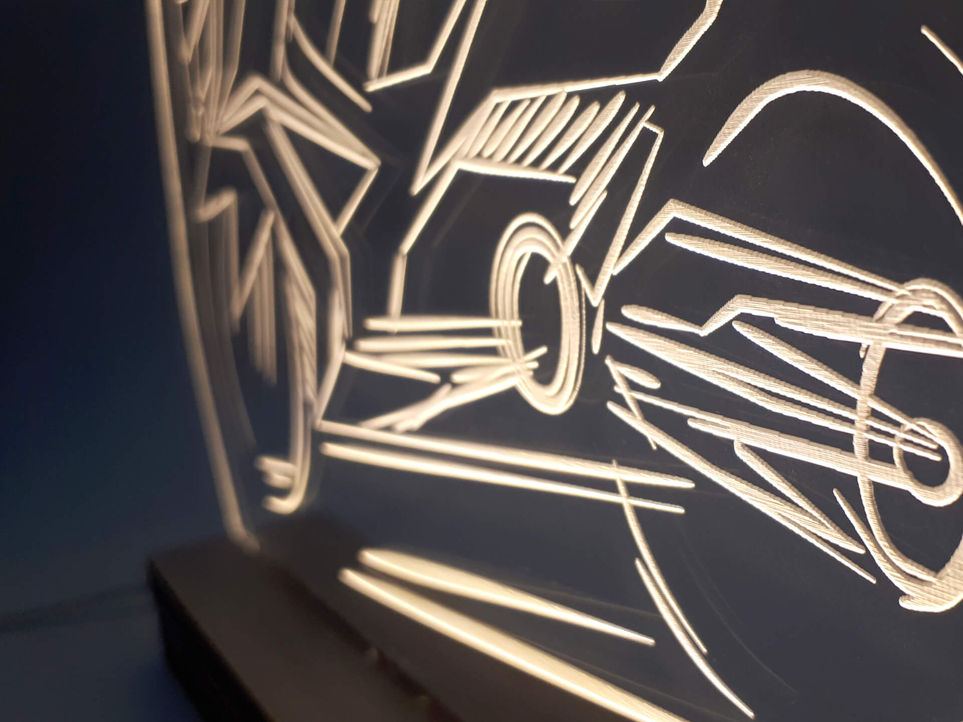 Φωτιστικό Led από ακρυλικό και ξύλινη χειροποίητη βάση δικής μας πρωτοποριακής σχεδίασης και κατασκευής.