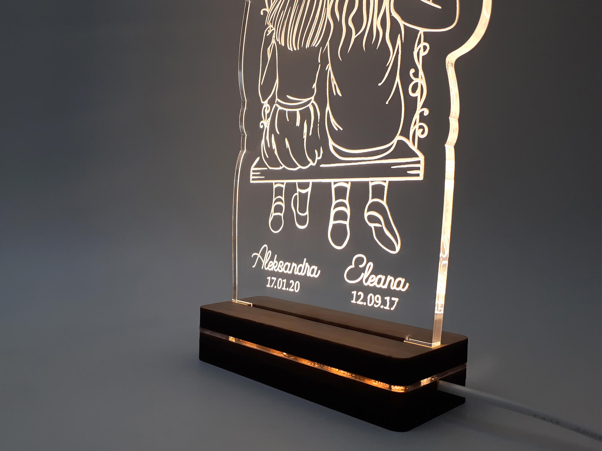 • Υλικά: Led λευκού χρώματος, Ακρυλικό διάφανο πάχους 6mm, Χειροποίητη βάση από ξύλο και ακρυλικό
