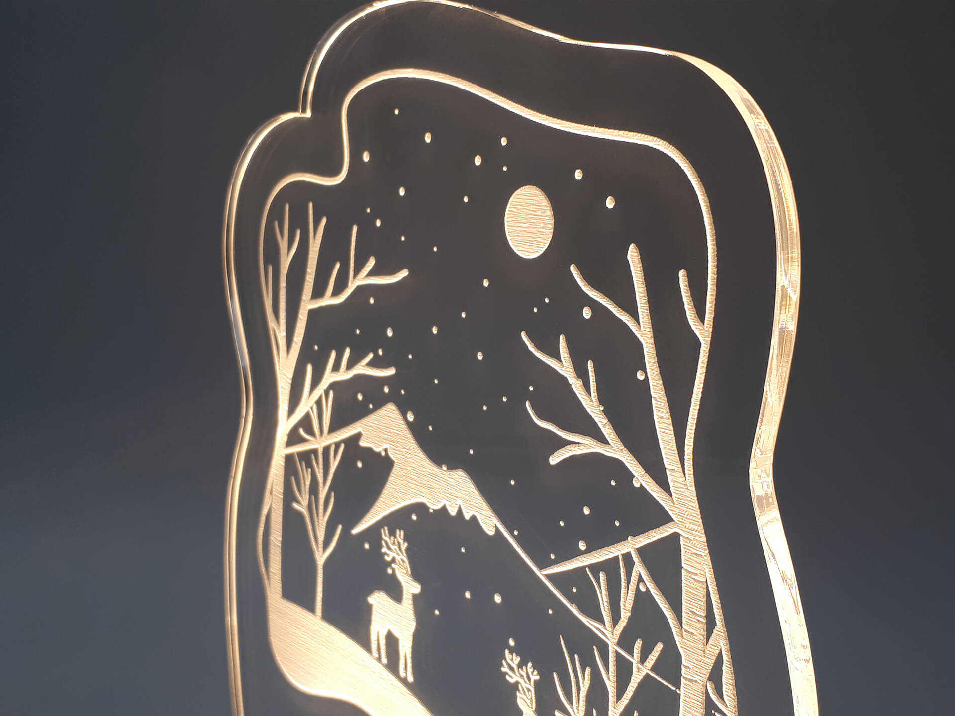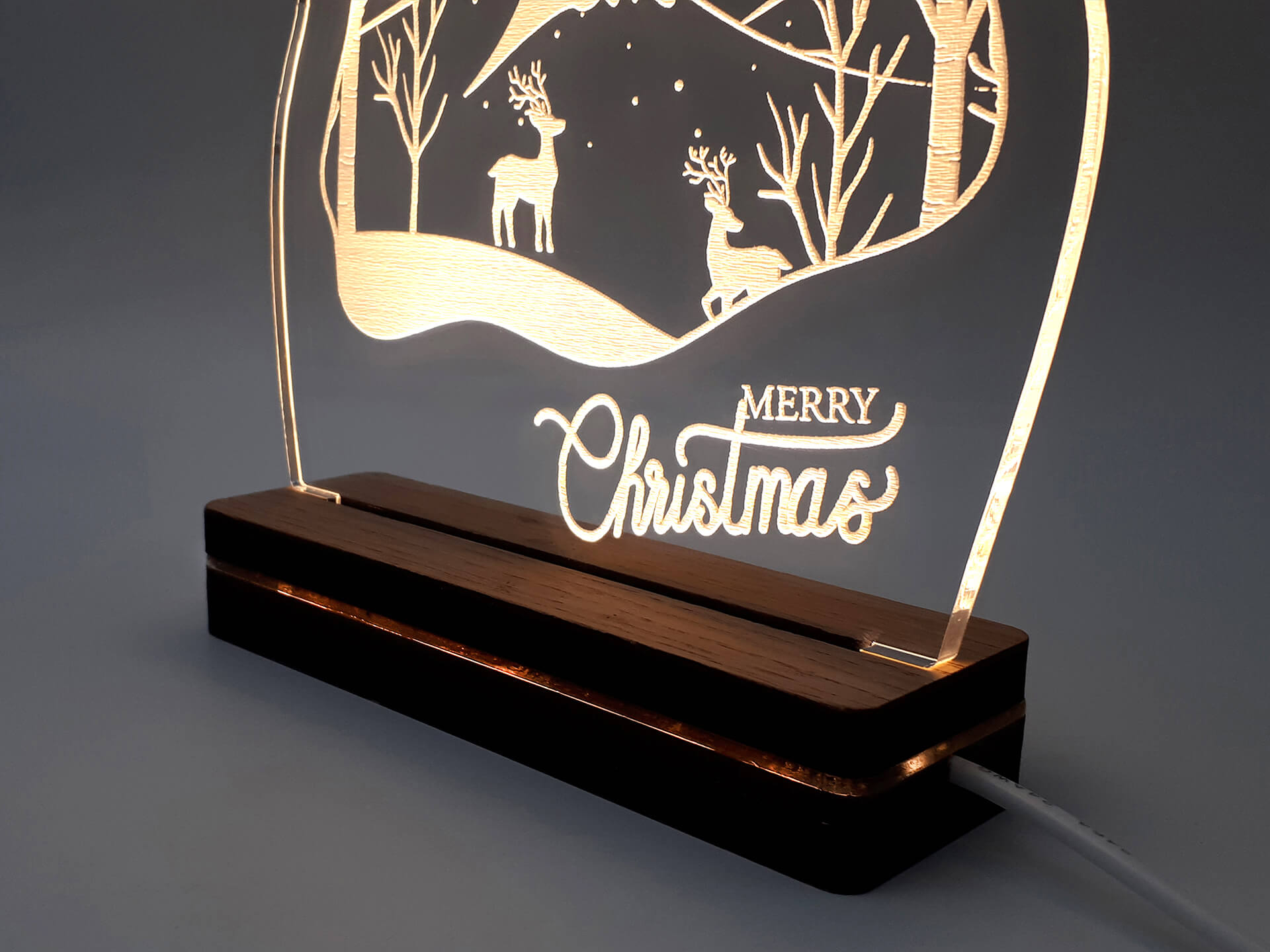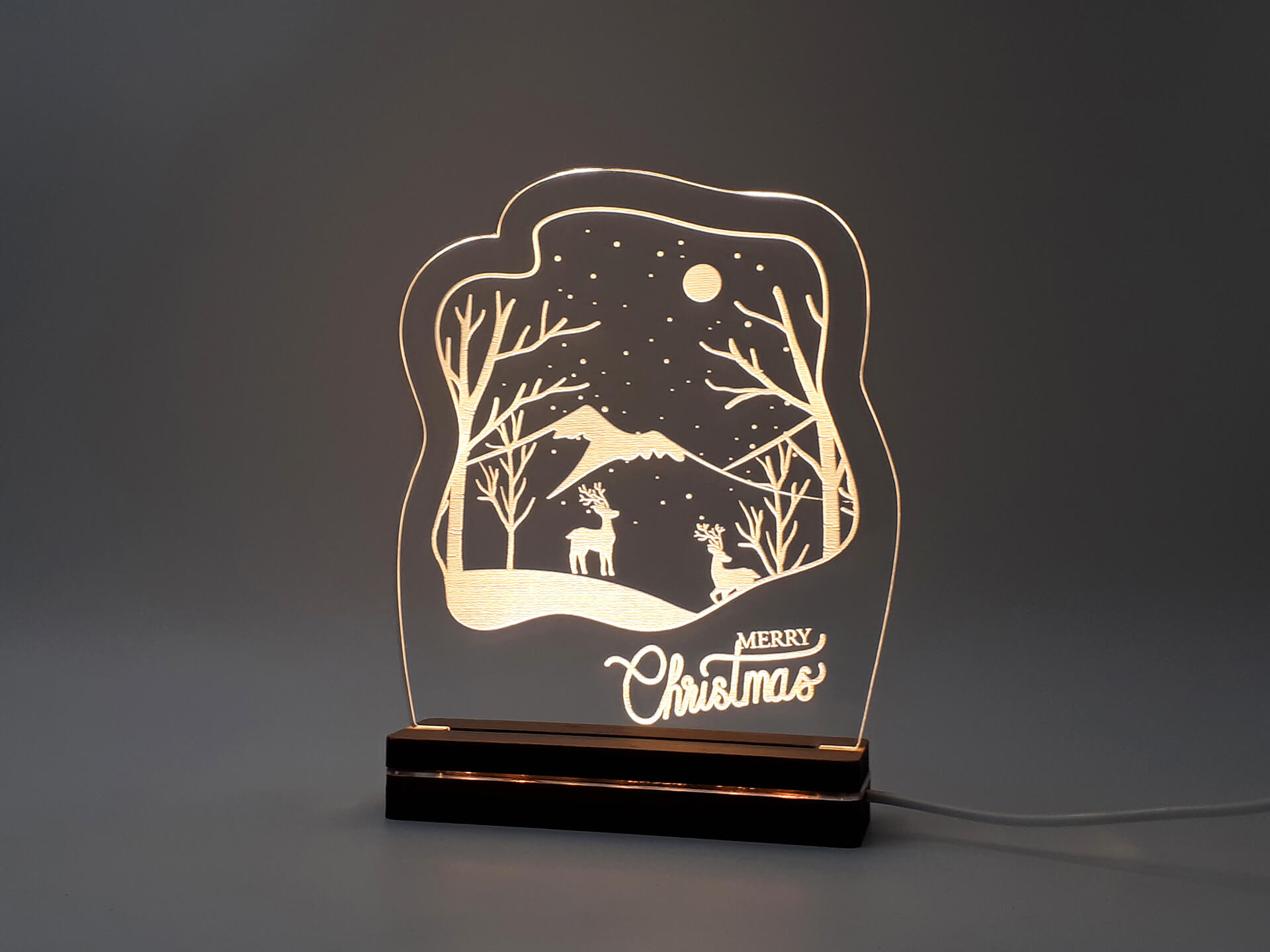 • Υλικά: Led λευκού χρώματος, Ακρυλικό διάφανο πάχους 6mm, Χειροποίητη βάση από ξύλο και ακρυλικό