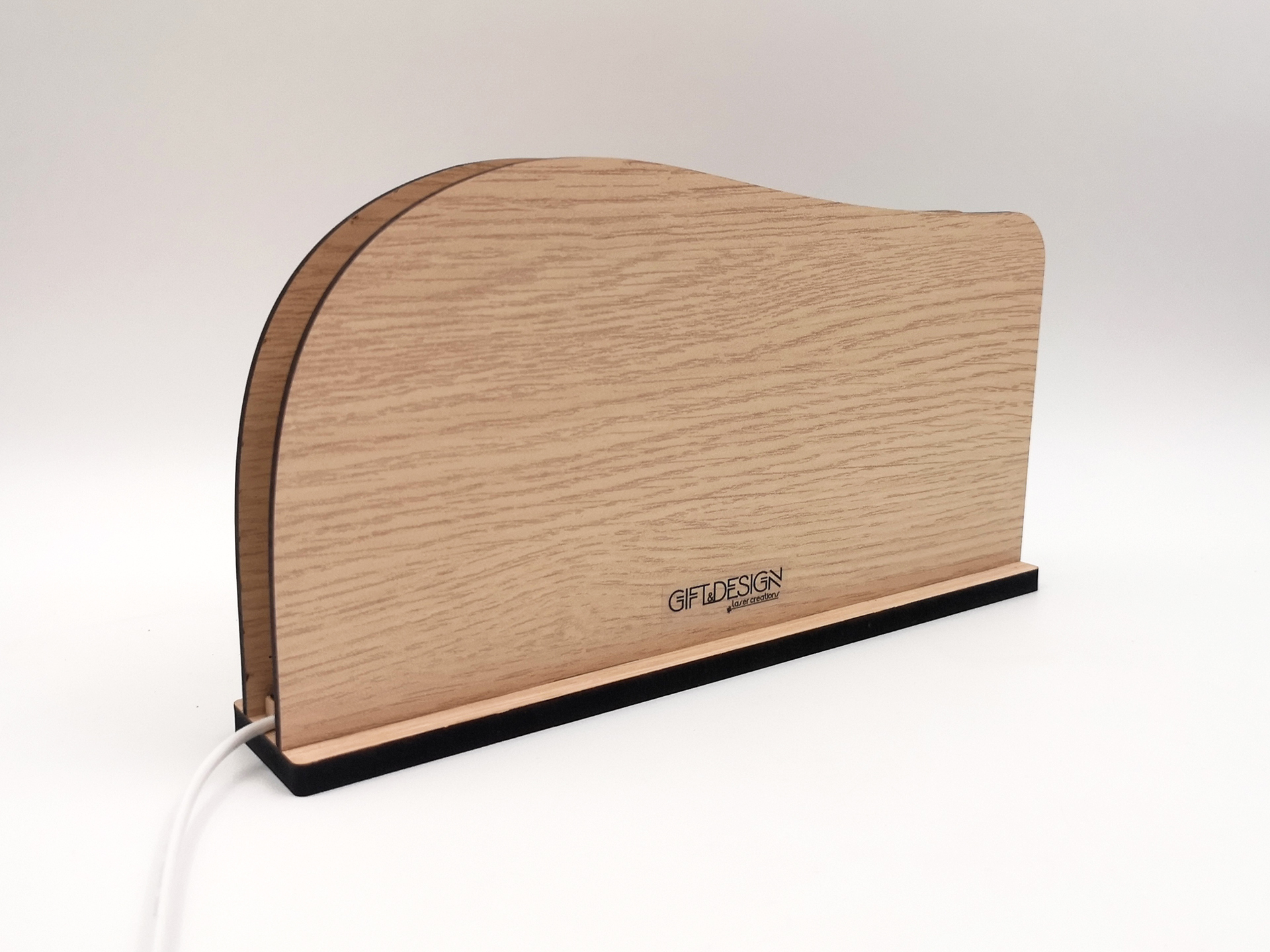 Φωτιστικό Led από ξύλο με ξύλινη χειροποίητη βάση δικής μας πρωτοποριακής σχεδίασης και κατασκευής.