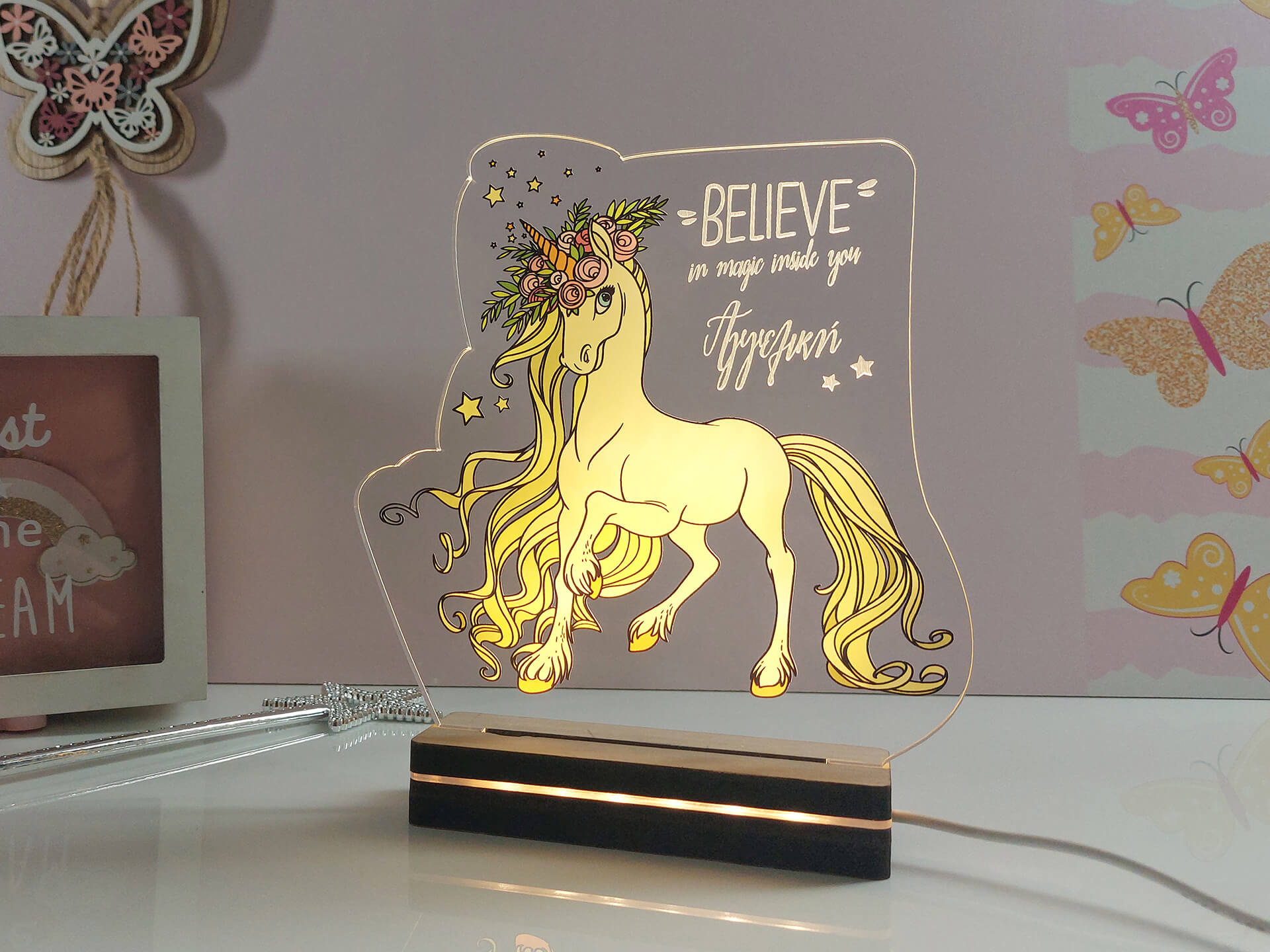 Διακοσμήστε το παιδικό δωμάτιο με ένα πρωτότυπο φωτιστικό με θέμα μονόκερο.