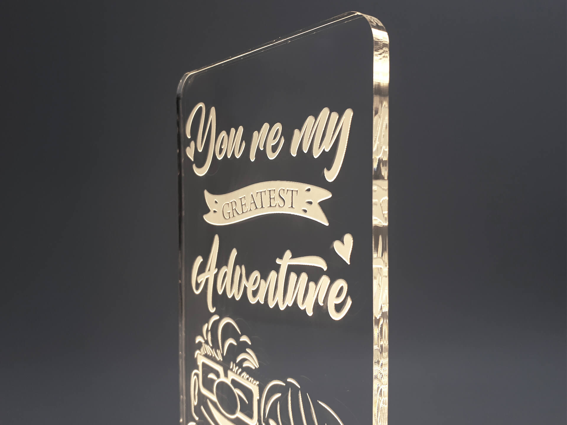 • Υλικά: Led λευκού χρώματος, Ακρυλικό διάφανο πάχους 6mm, Χειροποίητη βάση από ξύλο και ακρυλικό