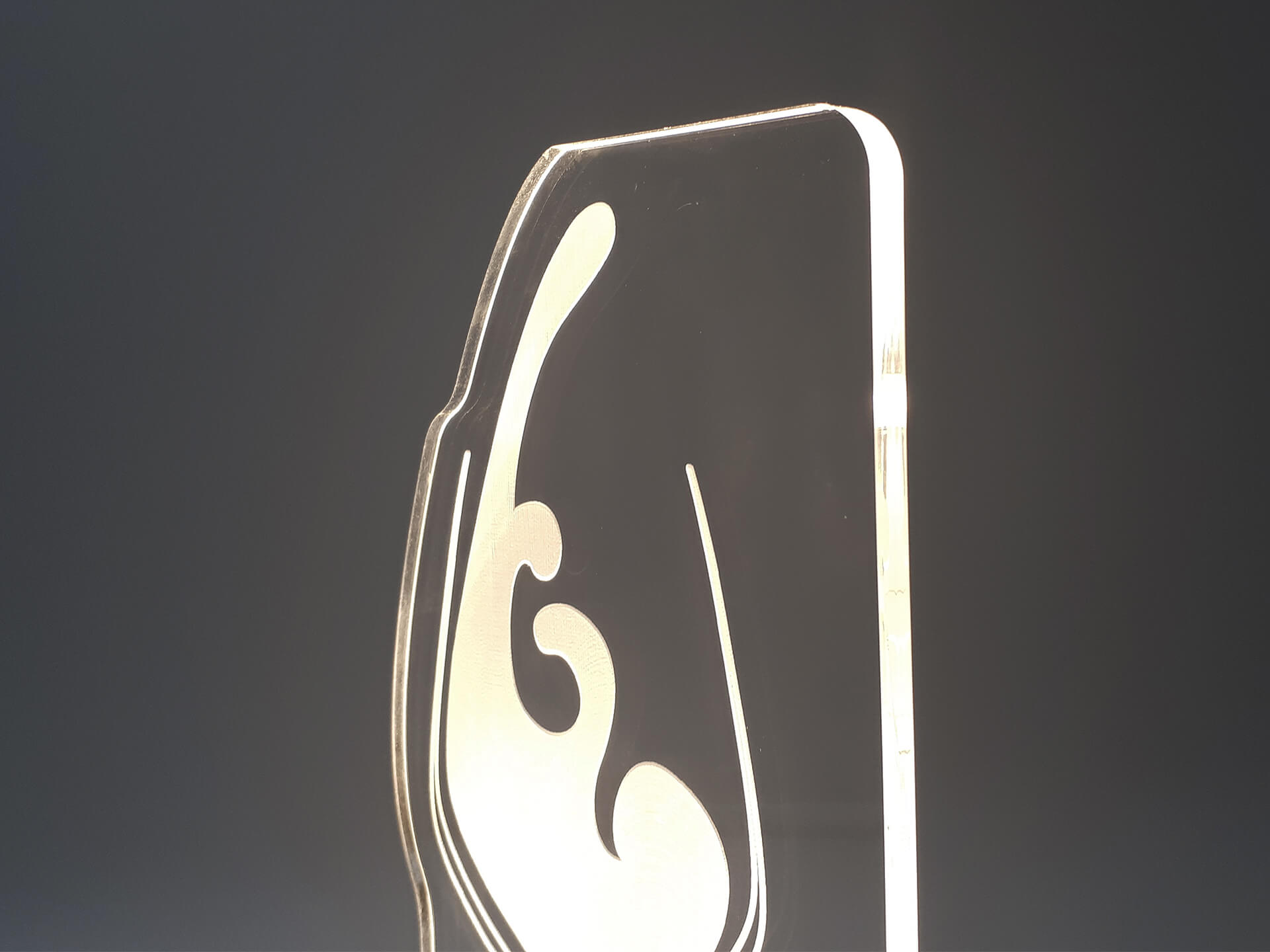 Φωτιστικό Led από ακρυλικό και ξύλινη χειροποίητη βάση δικής μας πρωτοποριακής σχεδίασης και κατασκευής.