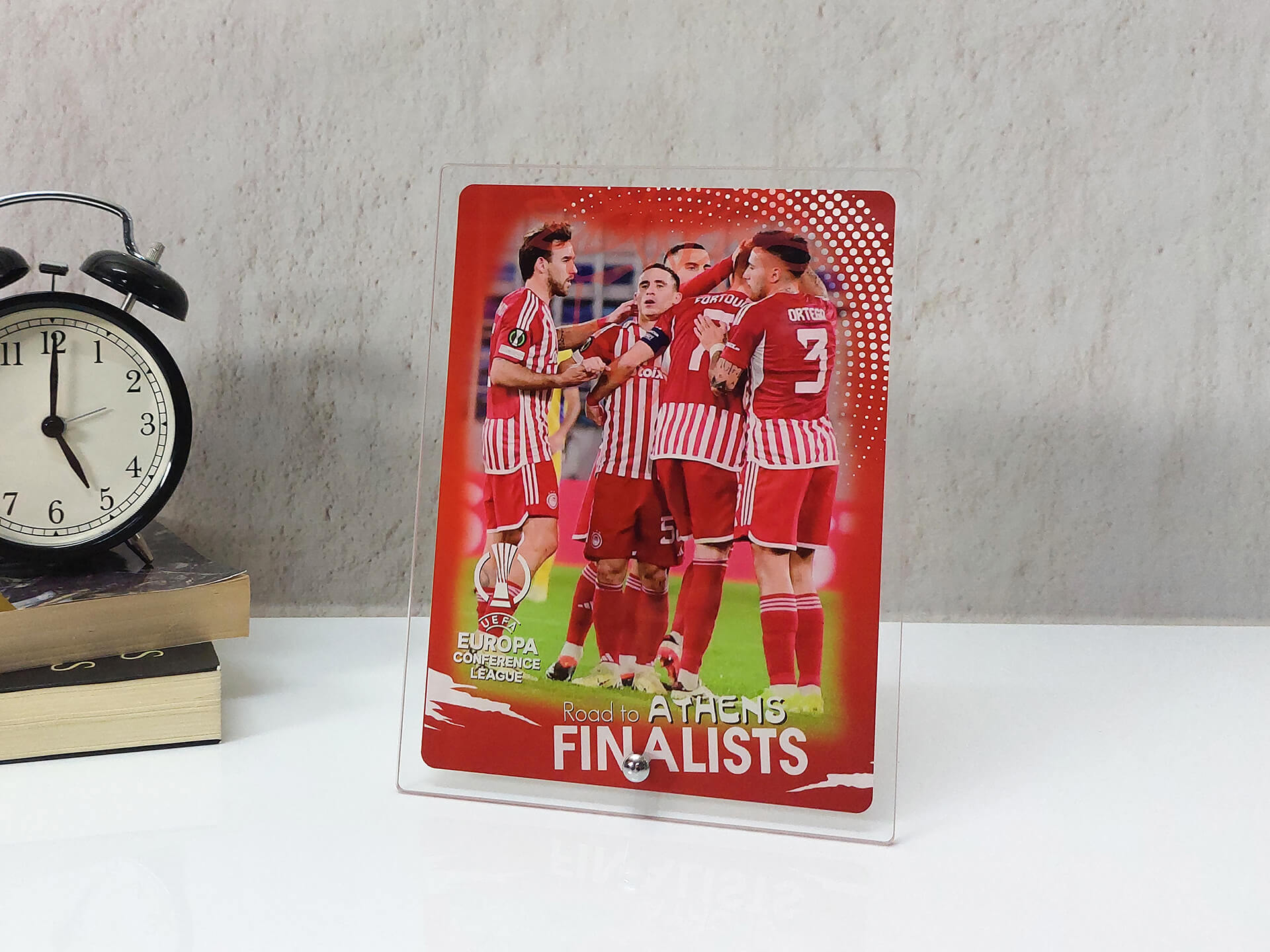 Επιτραπέζια κορνίζα με θέμα την πρόκριση του Ολυμπιακού στον τελικό του Conference League.