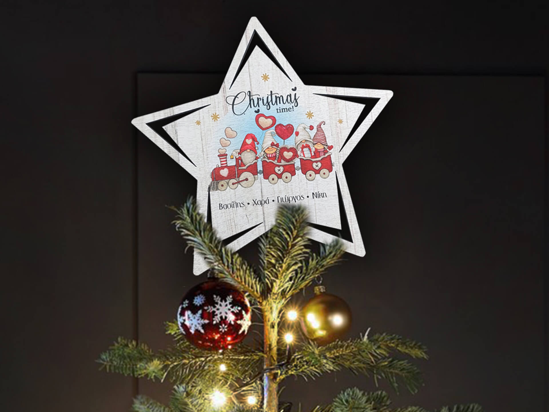 Ξύλινη κορυφή δέντρου αστέρι με εκτύπωση. Φέτος το χριστουγεννιάτικο δέντρο σας θα είναι ακόμη πιο ξεχωριστό!