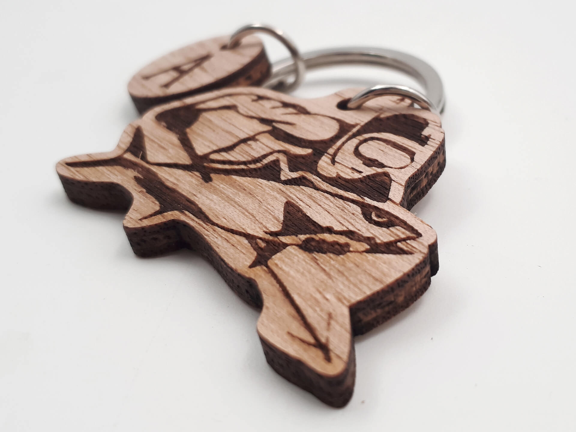 Πρωτότυπο ξύλινο μπρελόκ με θέμα το υποβρύχιο ψάρεμα για τους λάτρεις του είδους.