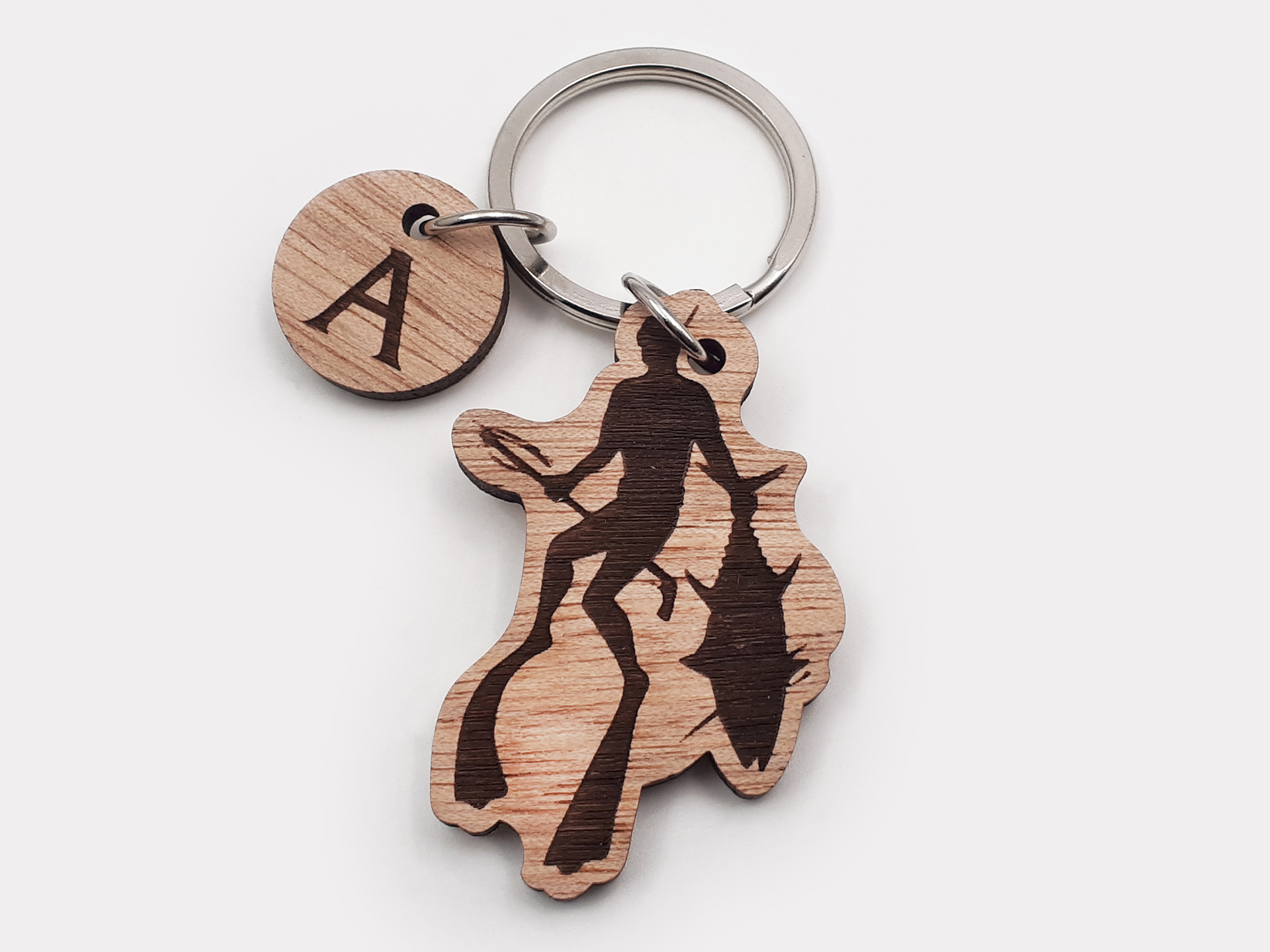 Πρωτότυπο ξύλινο μπρελόκ με θέμα το υποβρύχιο ψάρεμα για τους λάτρεις του είδους.