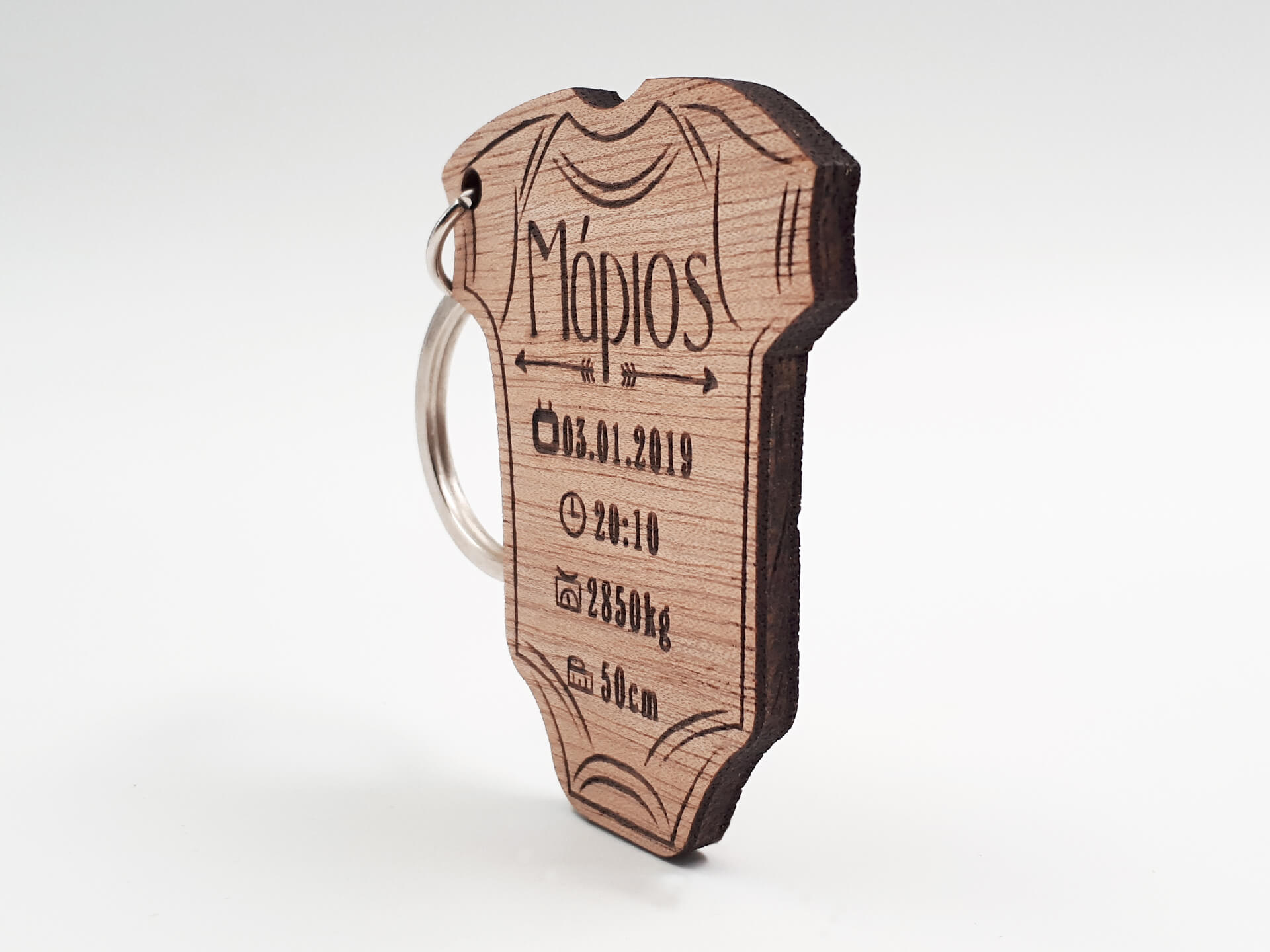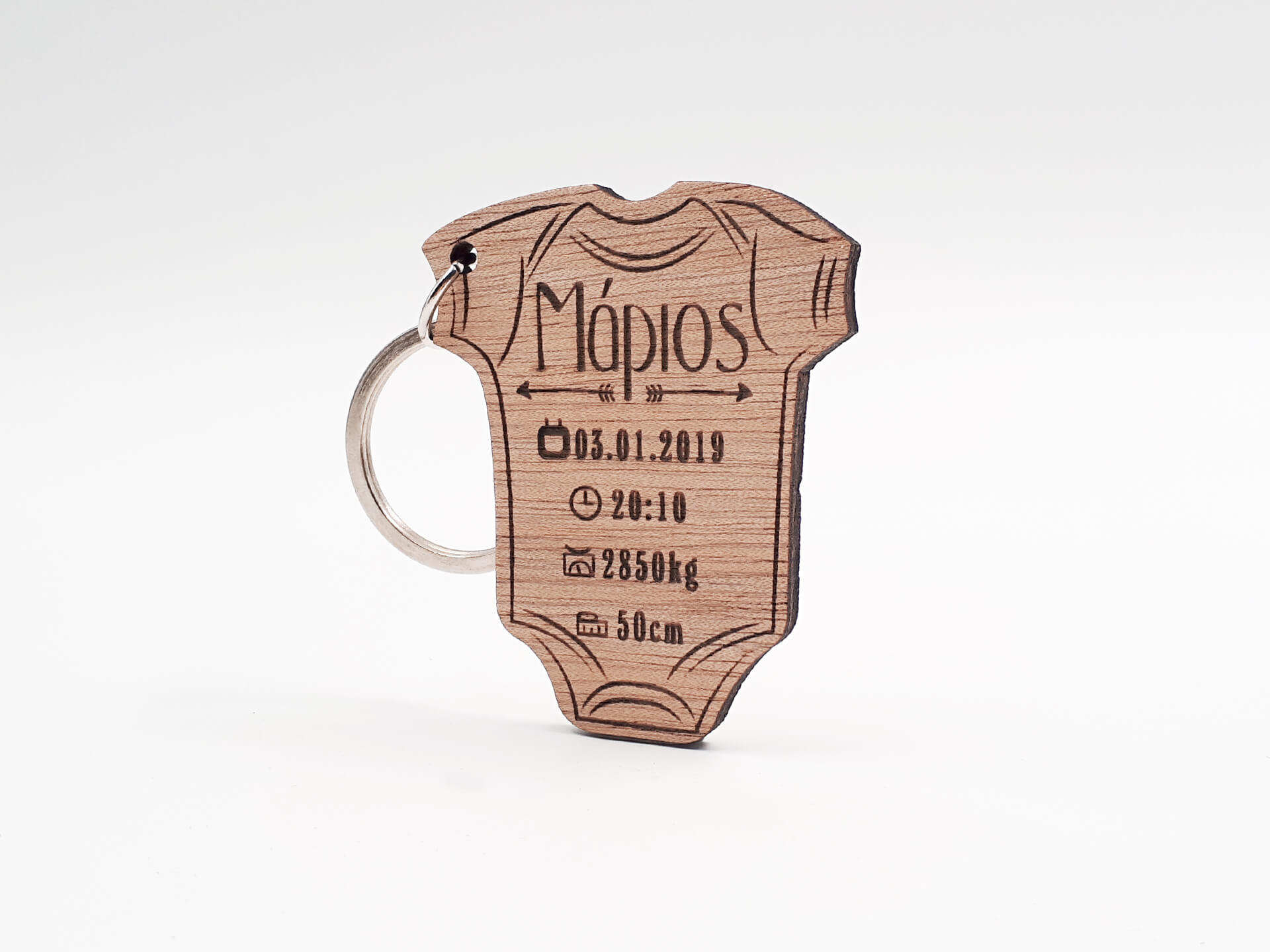 Ξύλινο μπρελόκ φορμάκι. Χαράξτε τα στοιχεία γέννησης του μωρού σας για να τα έχετε πάντα μαζί σας, ή μπορείτε να το κάνετε δώρο σε νέους γονείς με τον ερχομό του νέου μέλους!