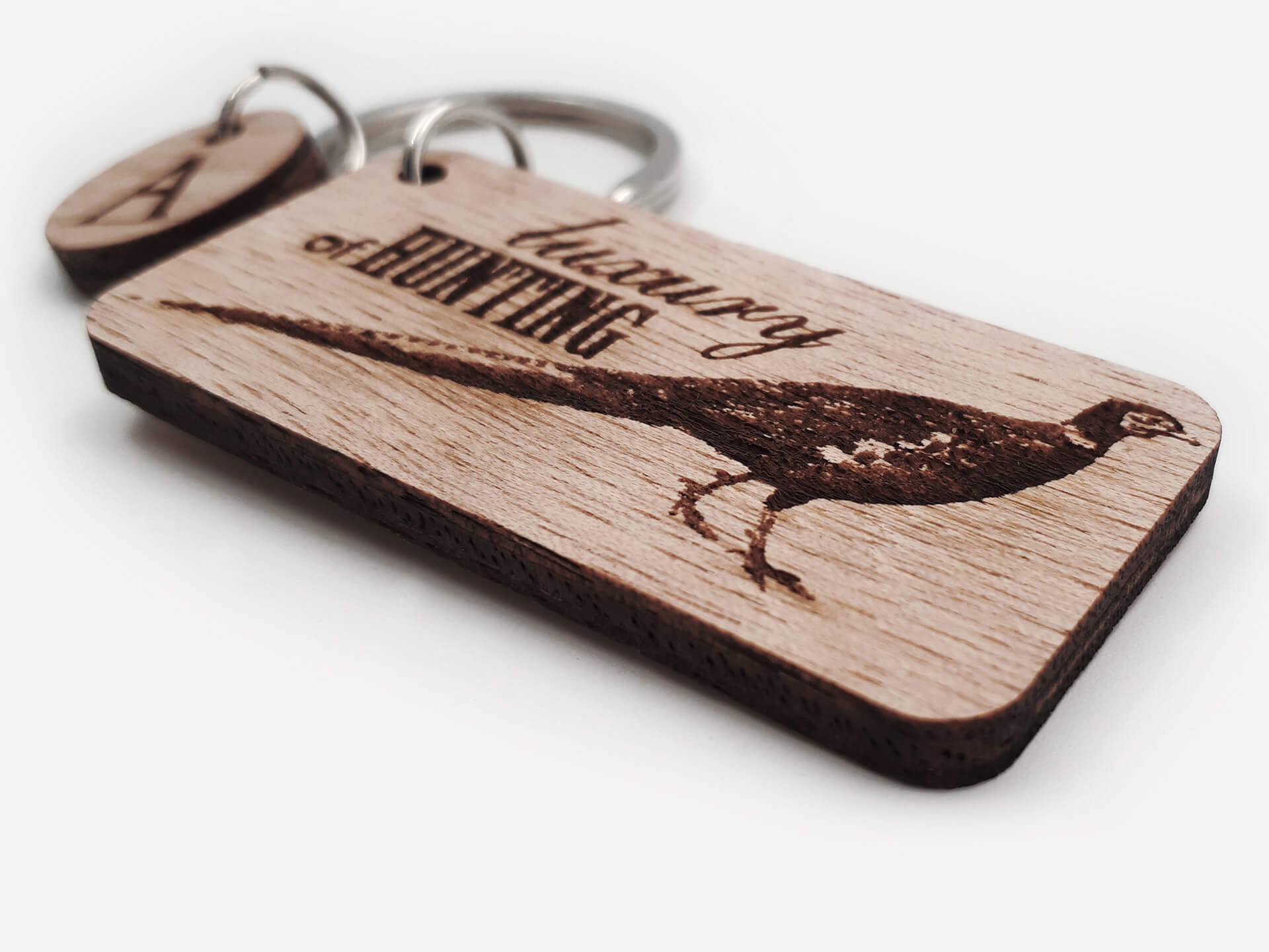 Πρωτότυπο ξύλινο μπρελόκ για το κυνήγι φασιανού, ένα μοναδικό δώρο για τους λάτρεις του κυνηγιού.