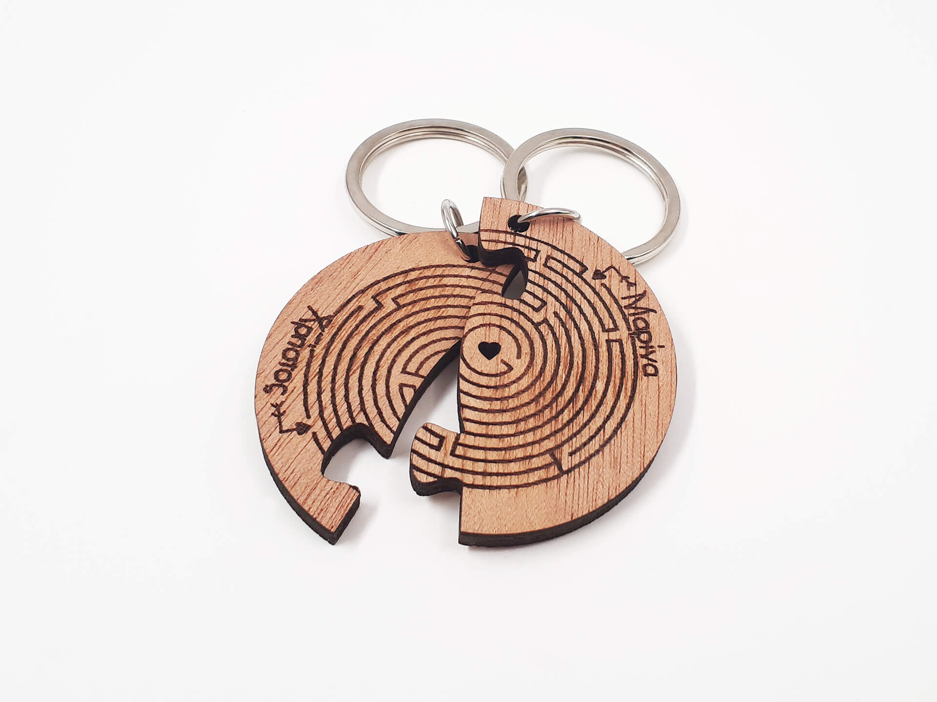 Πρωτότυπο διπλό ξύλινο μπρελόκ Παζλ για εσάς και το αγαπημένο σας πρόσωπο με χάραξη των δικών σας ονομάτων.