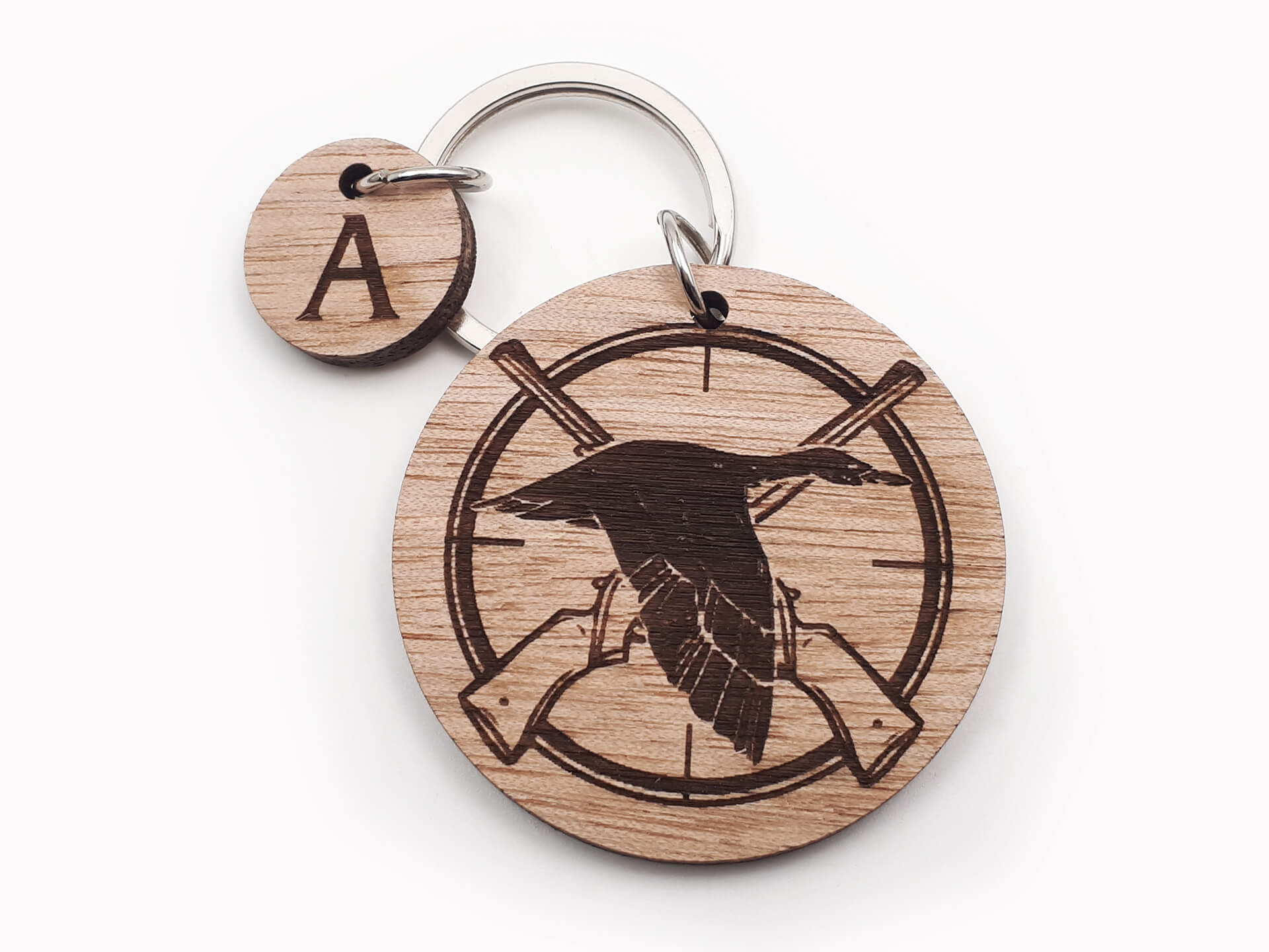 Ξύλινο μπρελόκ με θέμα το κυνήγι της πάπιας, ένα πρωτότυπο δώρο για τους λάτρεις του κυνηγιού.