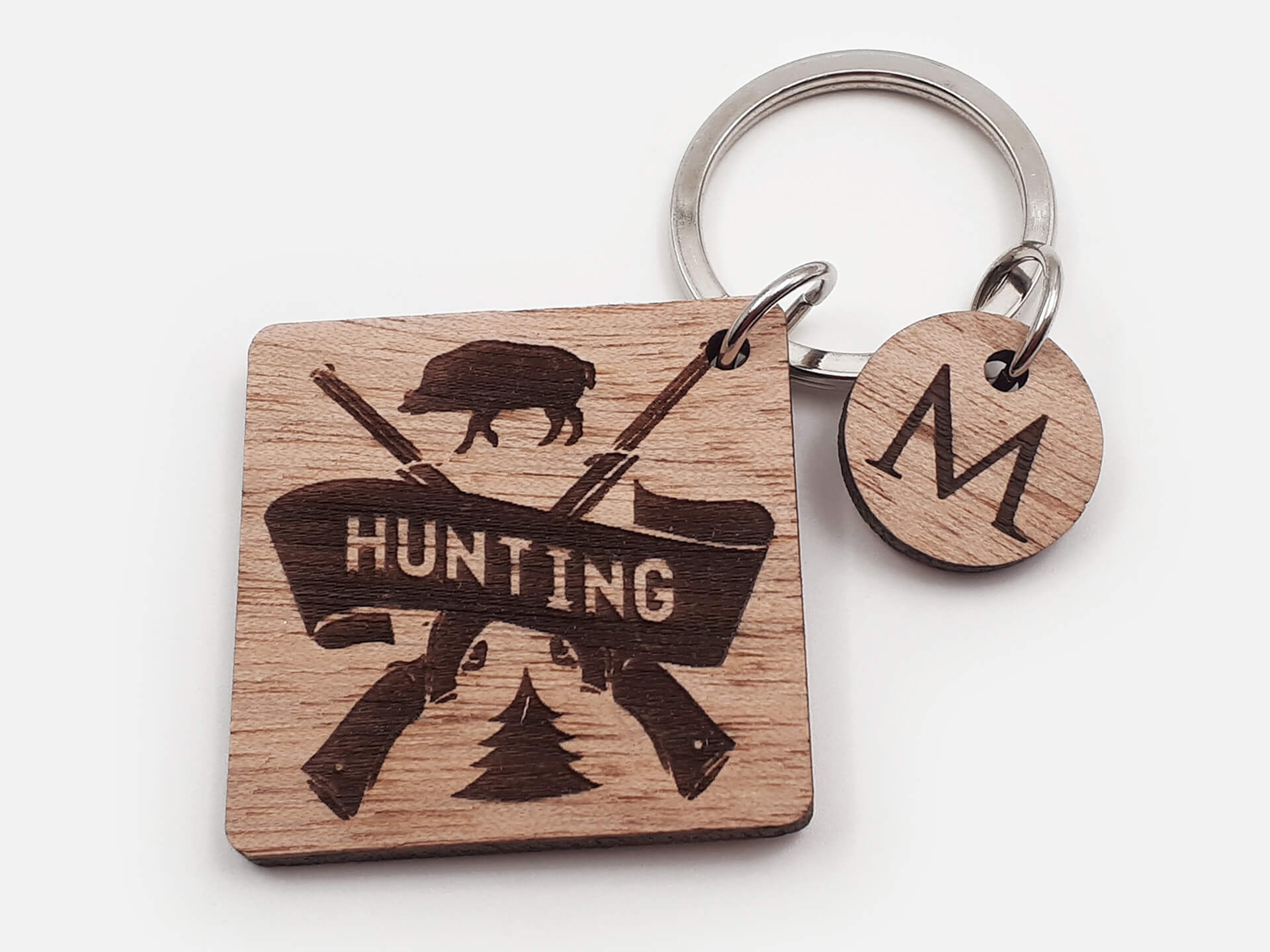 Πρωτότυπο ξύλινο μπρελόκ για το κυνήγι αγριογούρουνου, ένα μοναδικό δώρο για τους λάτρεις του κυνηγιού.