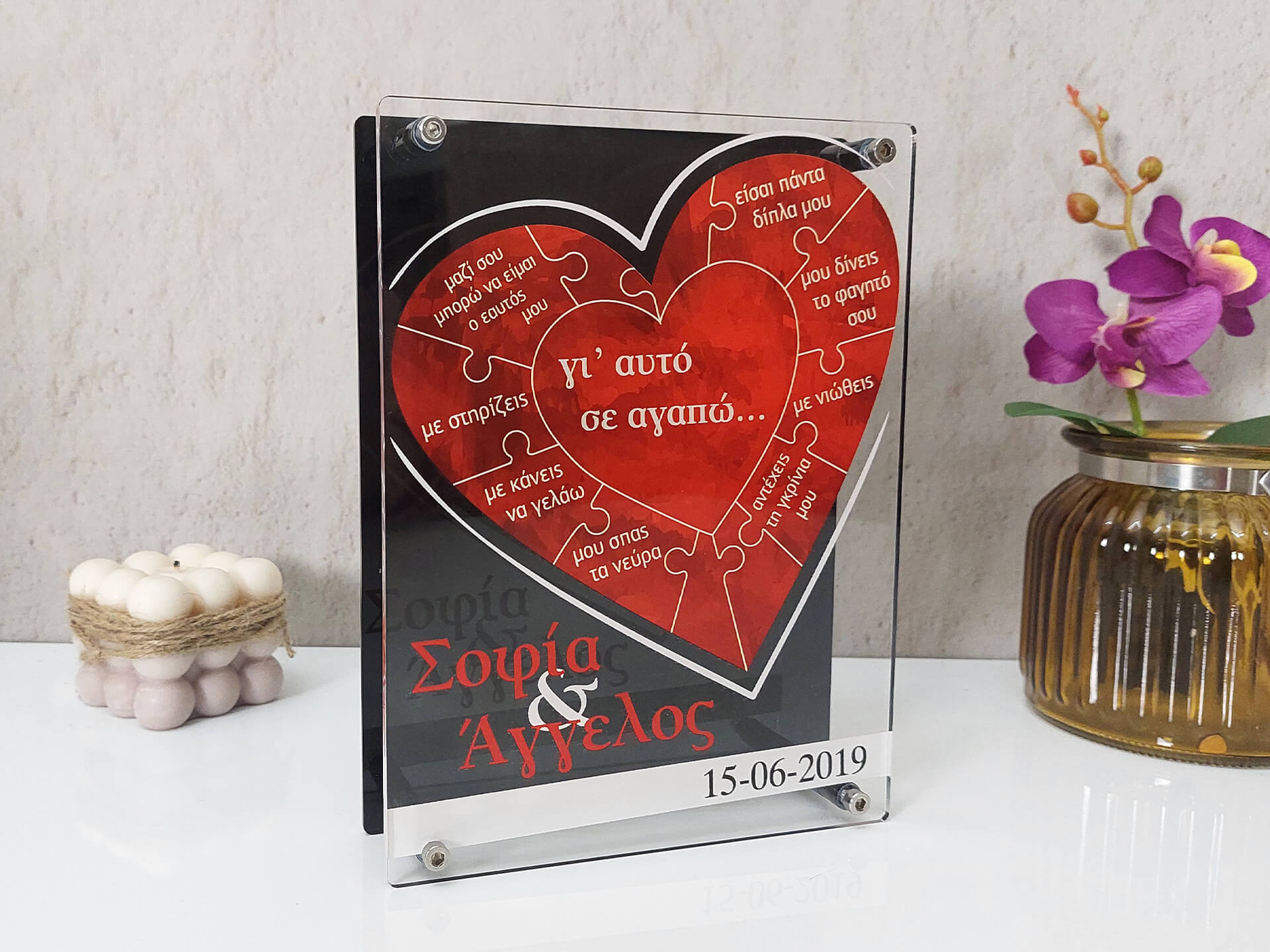 Plexiglass Κορνίζα “Καρδιά Πάζλ”