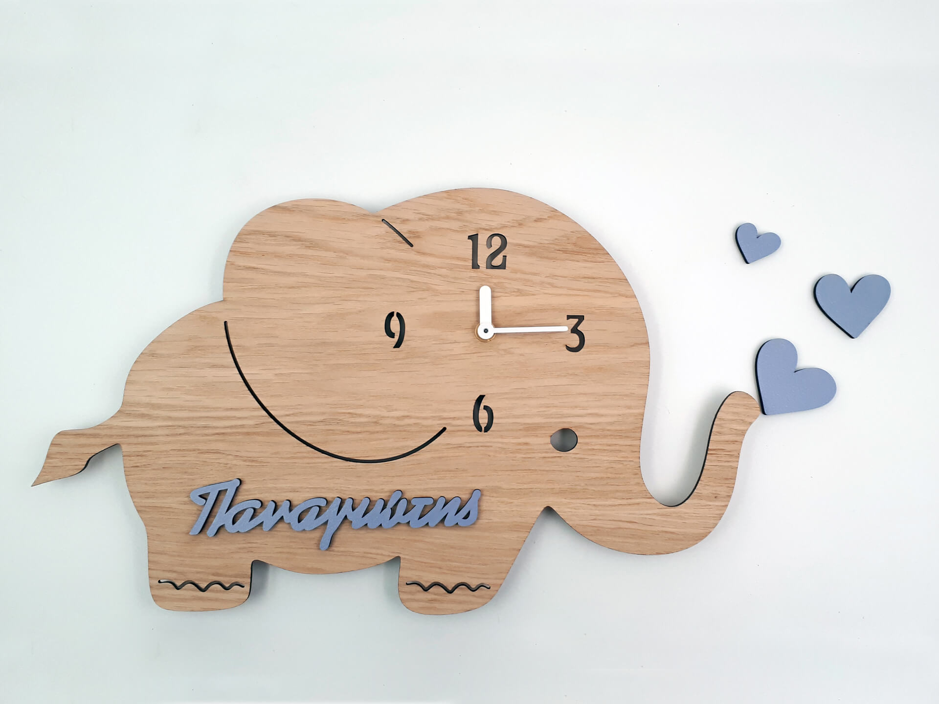 Πρωτότυπο παιδικό ρολόι τοίχου ελεφαντάκι με το όνομα του μωρού σας!!