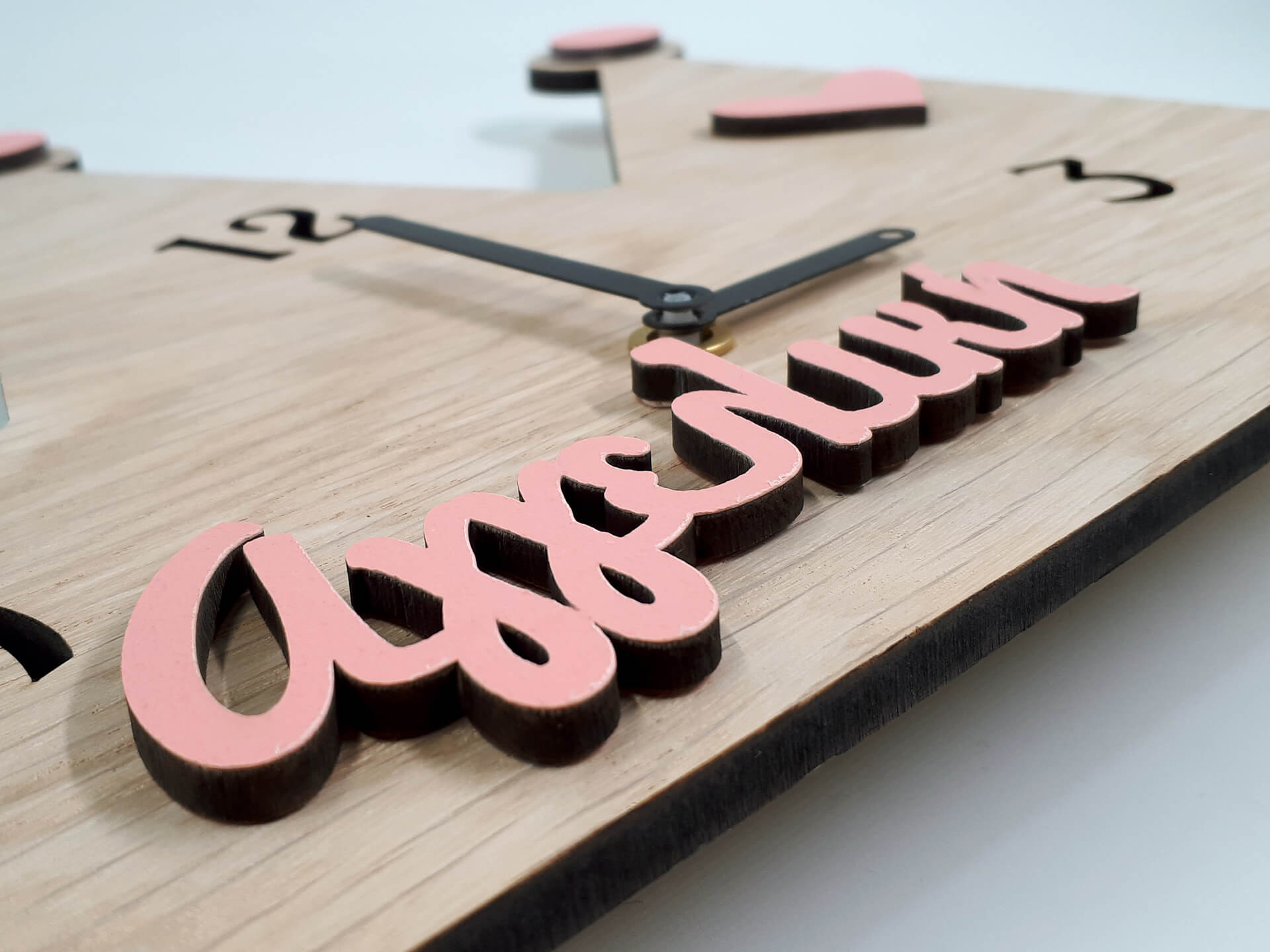 • Υλικά: Ξύλο mdf δρυς πάχους 4mm, χρωματιστό ξύλο πάχους 4mm (ροζ)