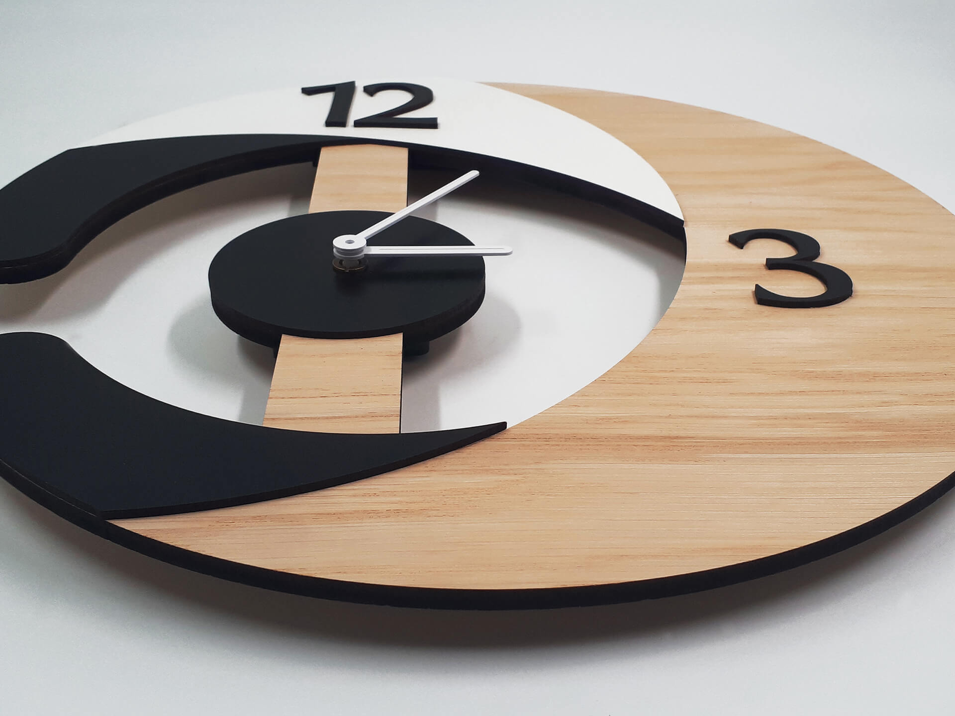 Ιδιαίτερο ρολόι τοίχου μοντέρνας σχεδίασης από συνδυασμό ξύλων. Συμπληρώνει τη διακόσμηση του χώρου σας!