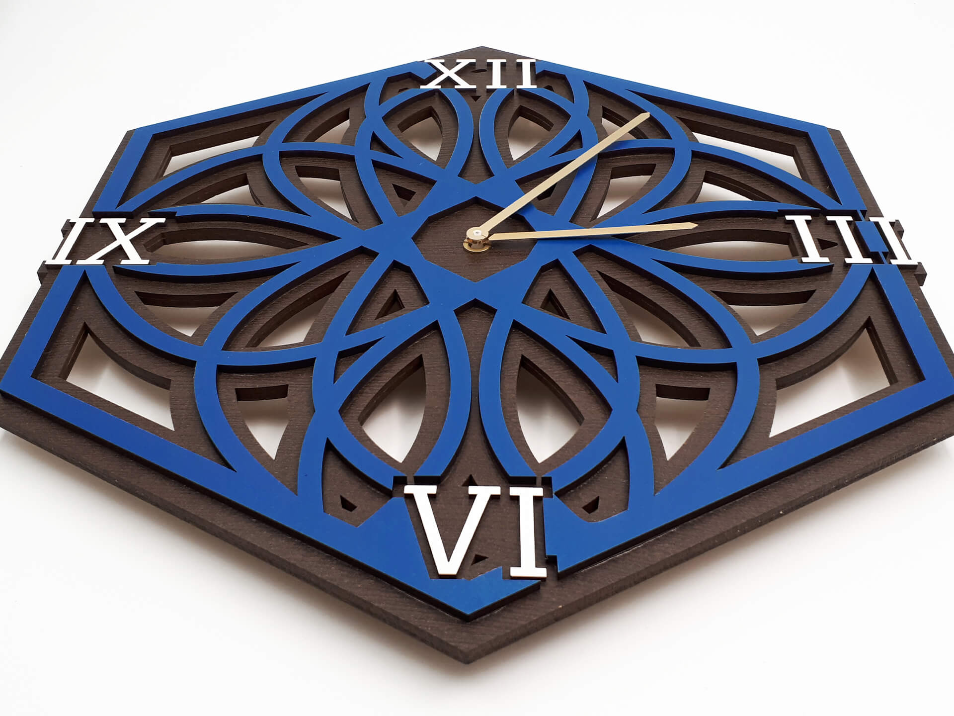 • Υλικά: Ξύλο MDF Δρυς πάχους 4mm, wenge πάχους 3mm, άσπρο πάχους 3mm και μπλε πάχους 4mm
