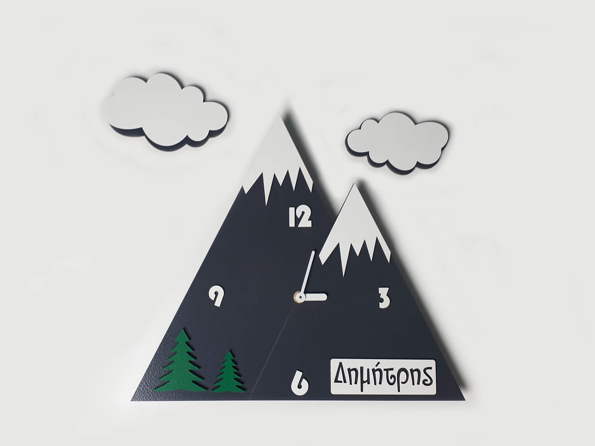 Πρωτότυπο παιδικό ρολόι τοίχου βουνό με το όνομα του μωρού σας!!