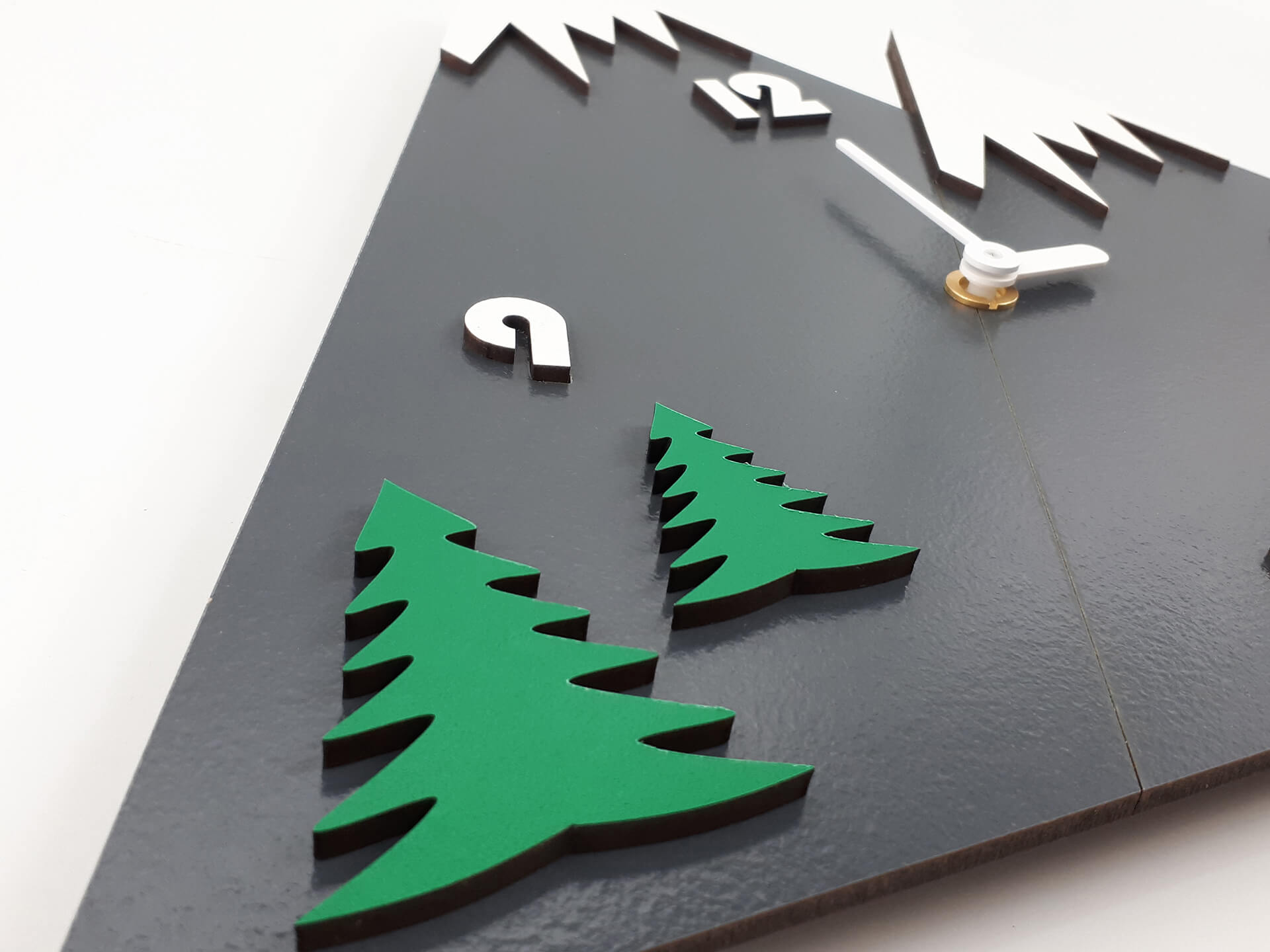• Υλικά: Χρωματιστά ξύλα πάχους 4mm (γκρι, πράσινο), mdf λακαριστό λευκό 3mm