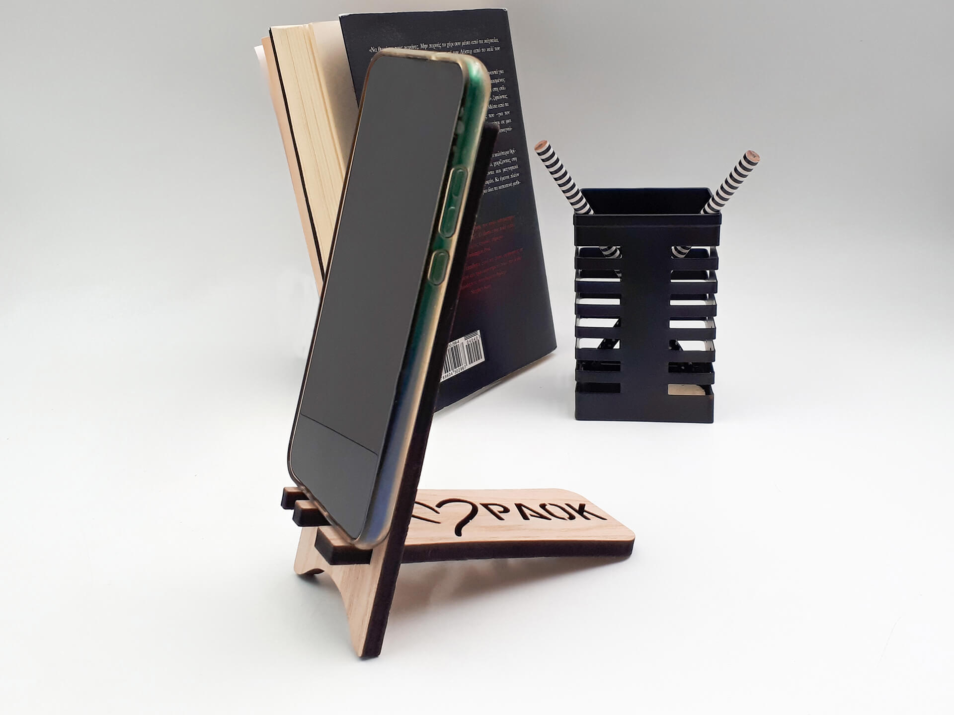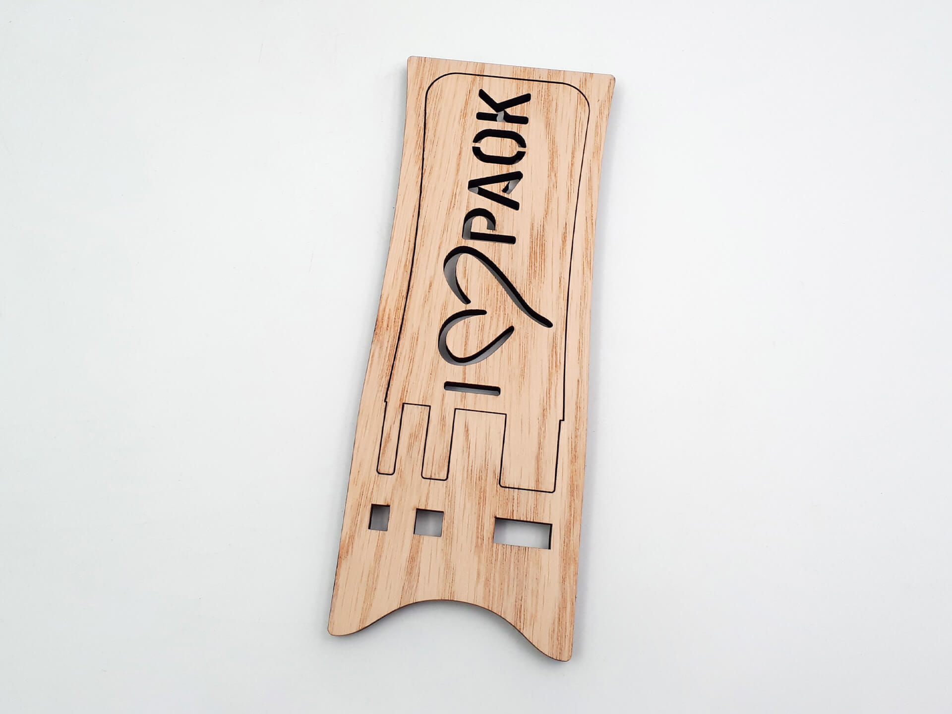 Ξύλινη βάση προβολής ΠΑΟΚ για την εύκολη λειτουργία του κινητού σας. Πρωτότυπος αναδιπλώμενος σχεδιασμός για να την έχετε παντού μαζί σας.