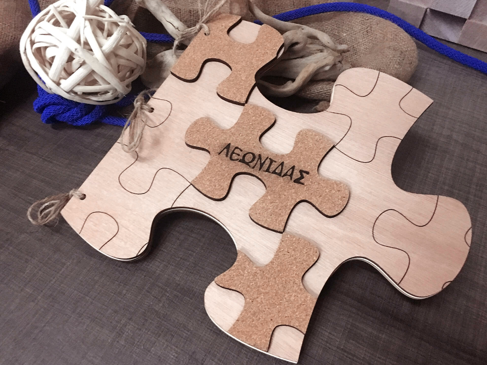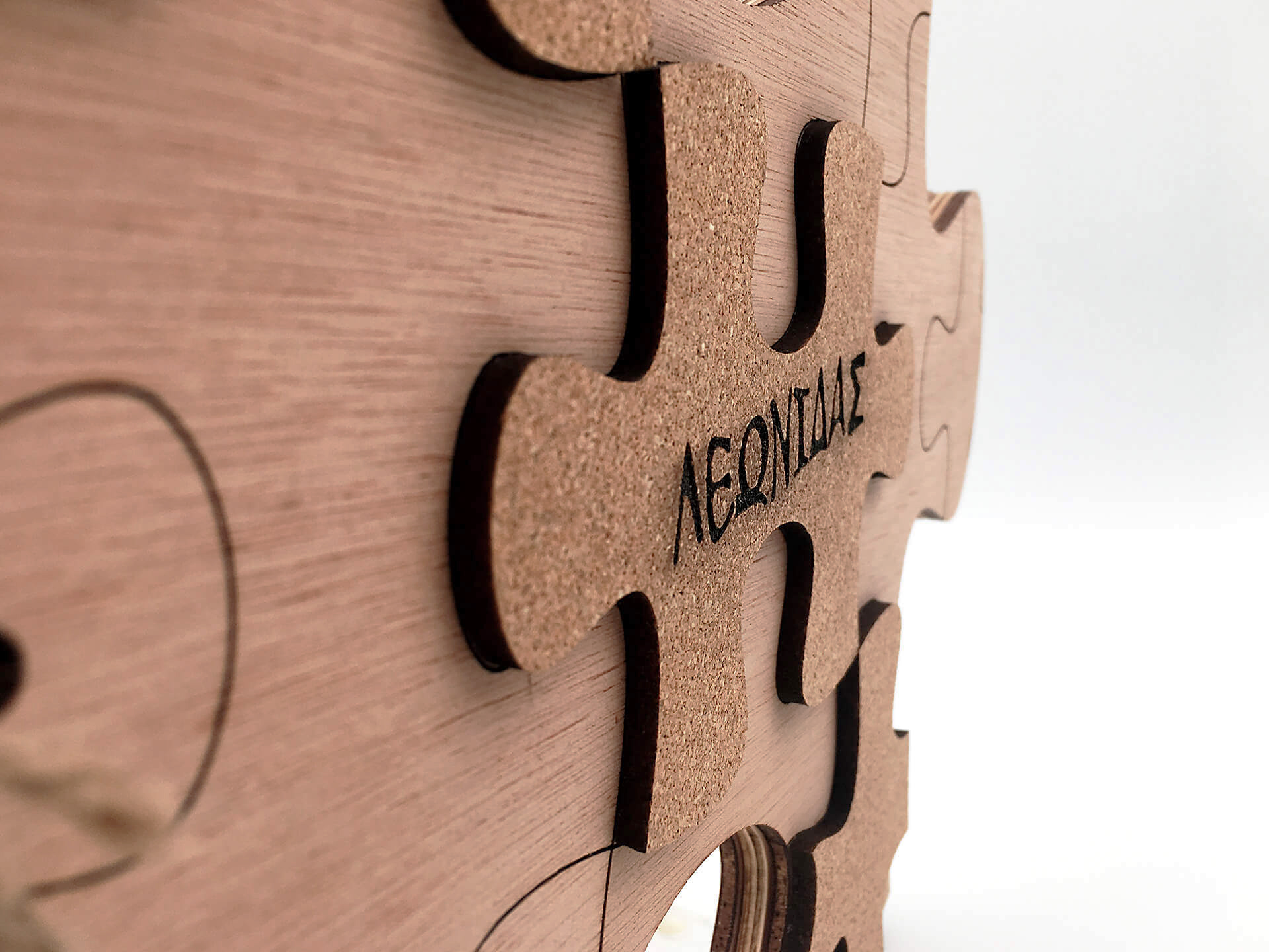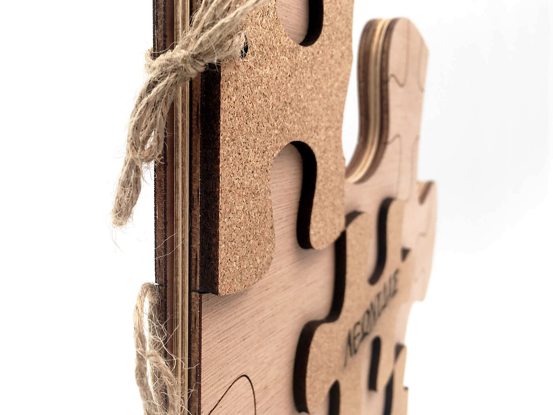 Πρωτότυπο βιβλίο ευχών από ξύλο και φελλό, σε σχήμα πάζλ.