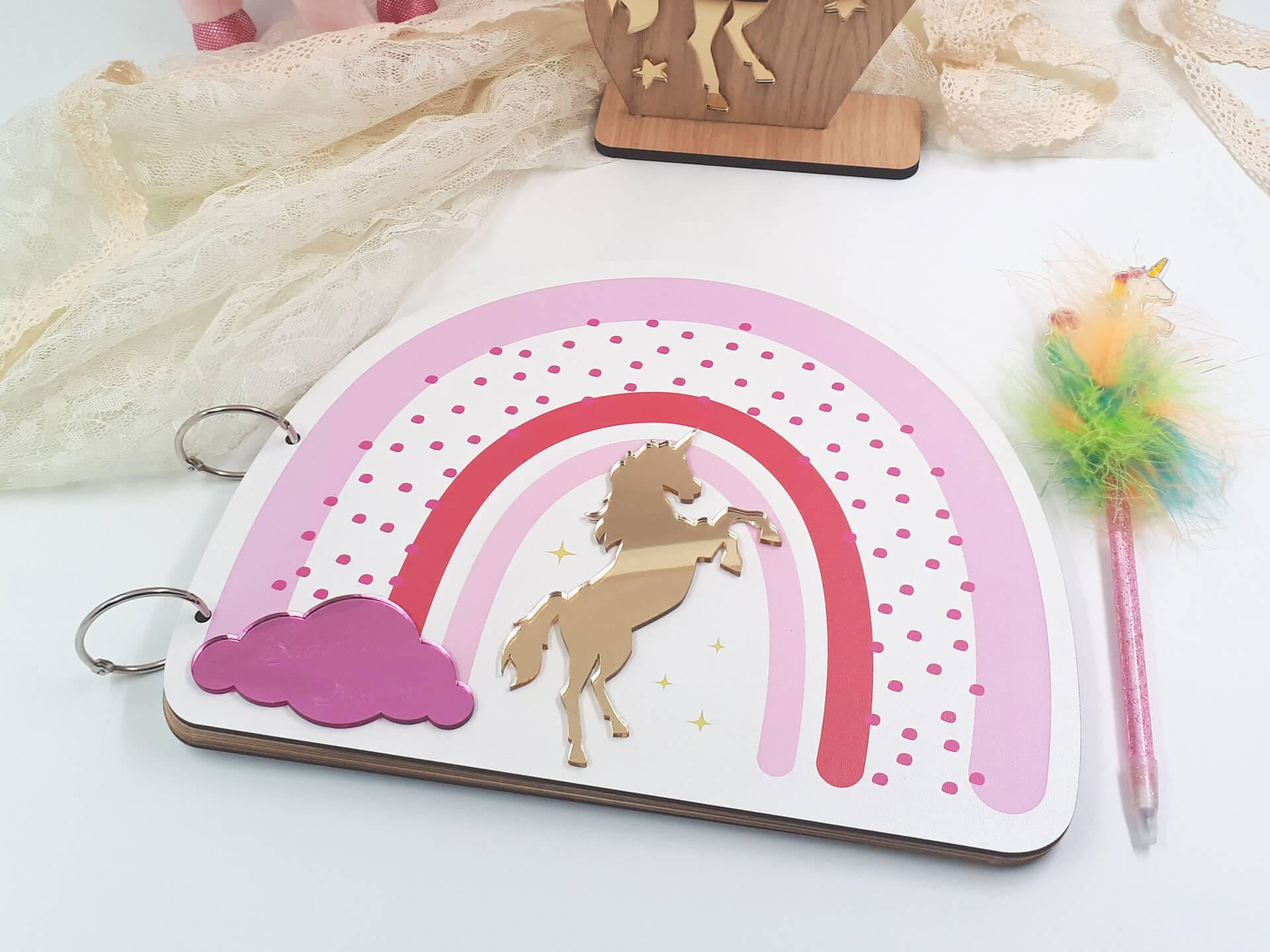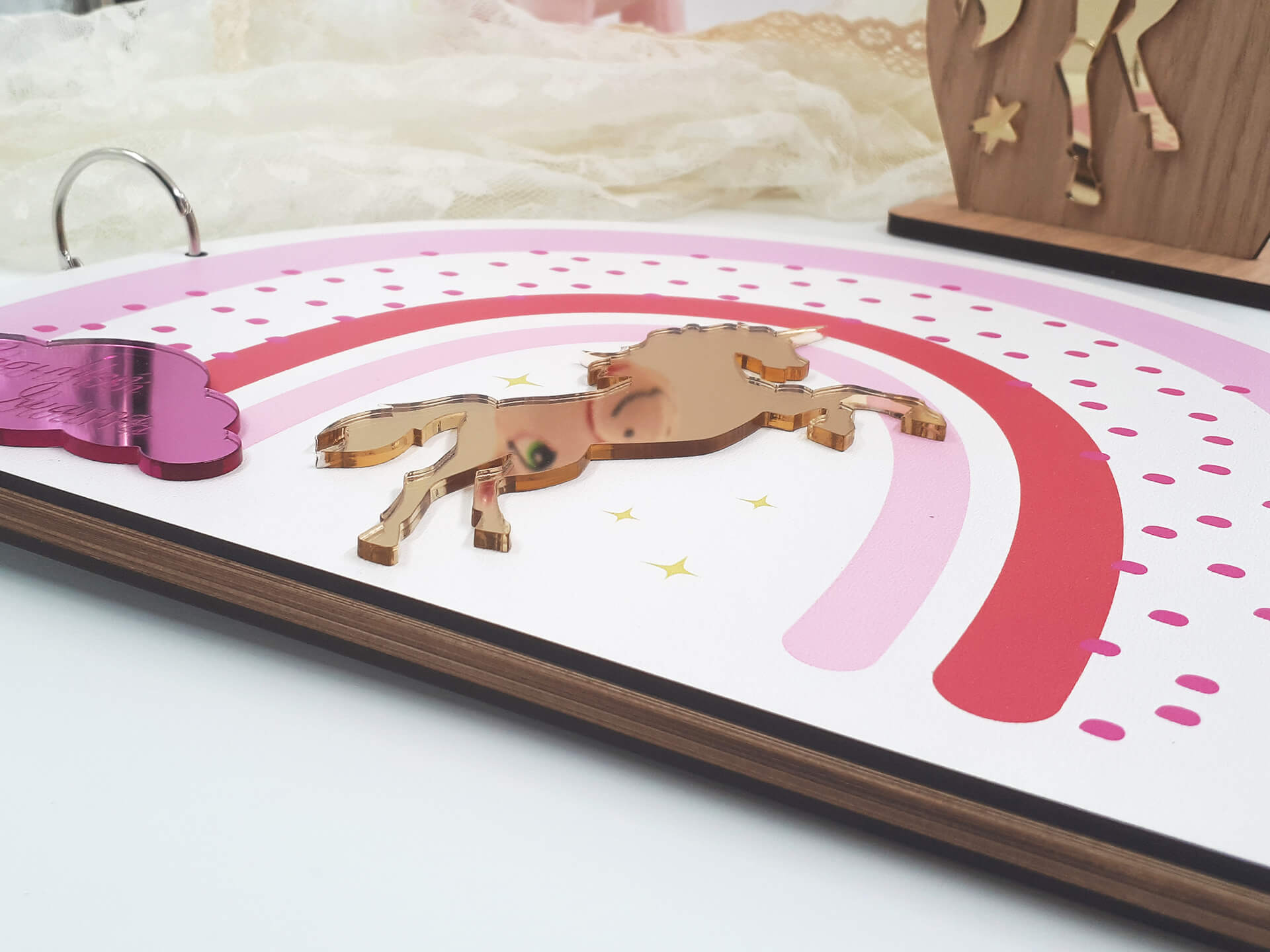 Πρωτότυπο Ξύλινο Βιβλίο ευχών σε σχήμα ουράνιο τόξο.