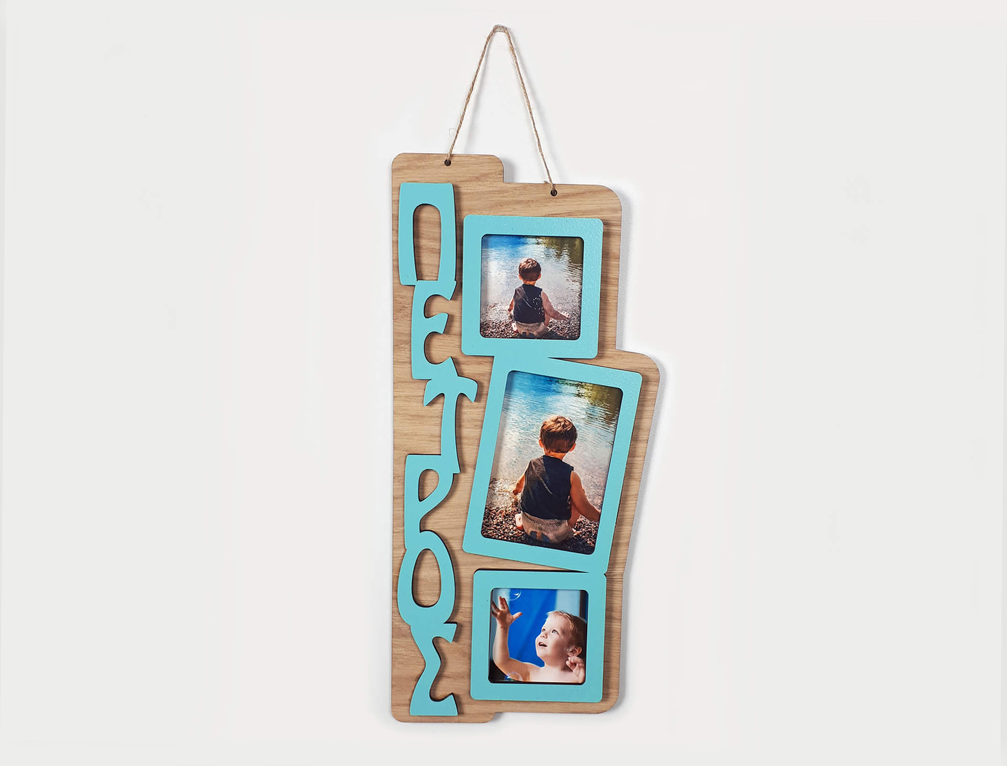 Επιτοίχια παιδική κορνίζα με συνδυασμό ξύλων. Κρατήστε για πάντα τις αγαπημένες φωτογραφίες του μωρού σας και διακοσμήστε το παιδικό του δωμάτιο.