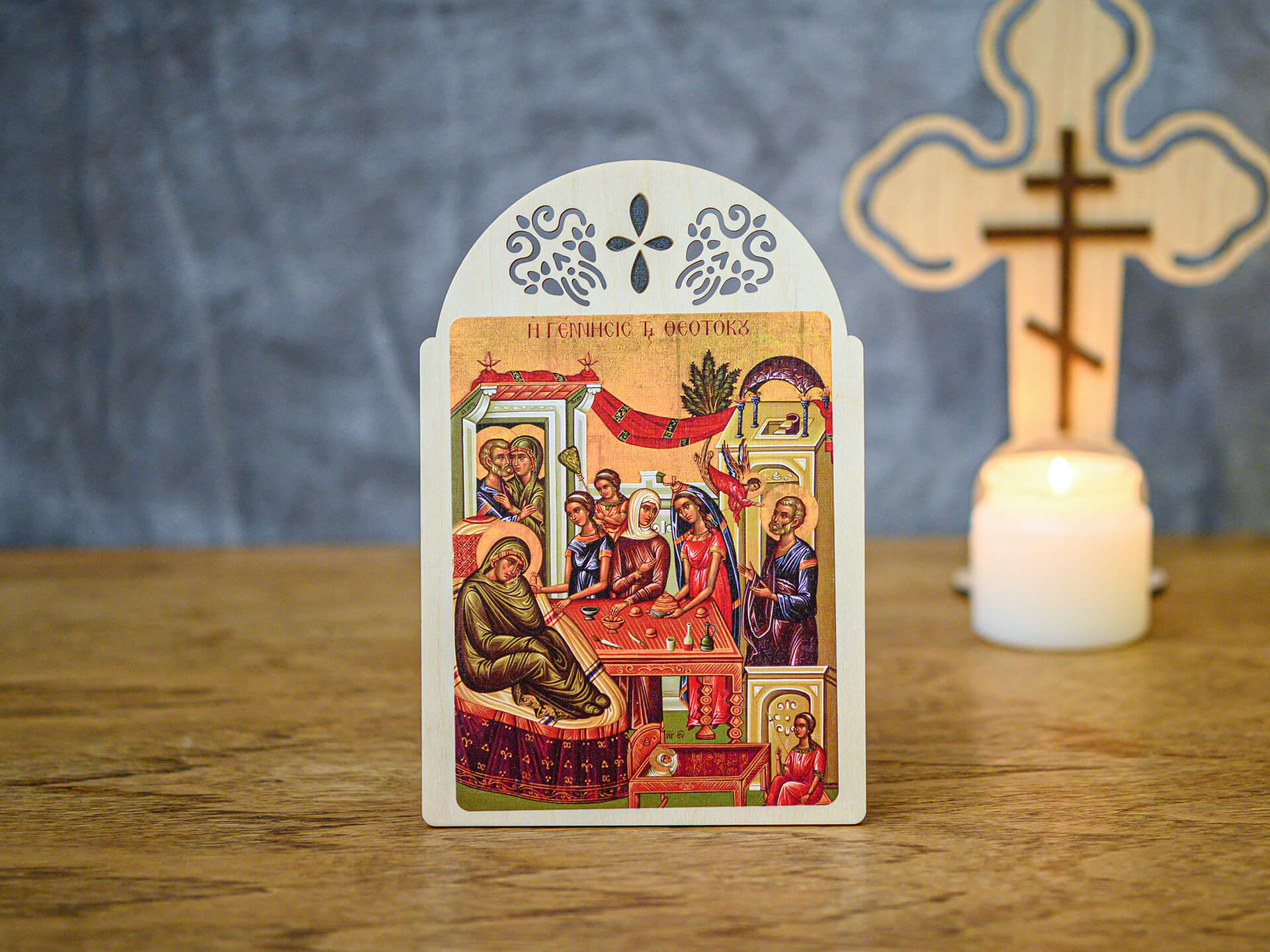 Ξύλινη Επιτραπέζια Εικόνα ”Η Γέννησις της Θεοτόκου”