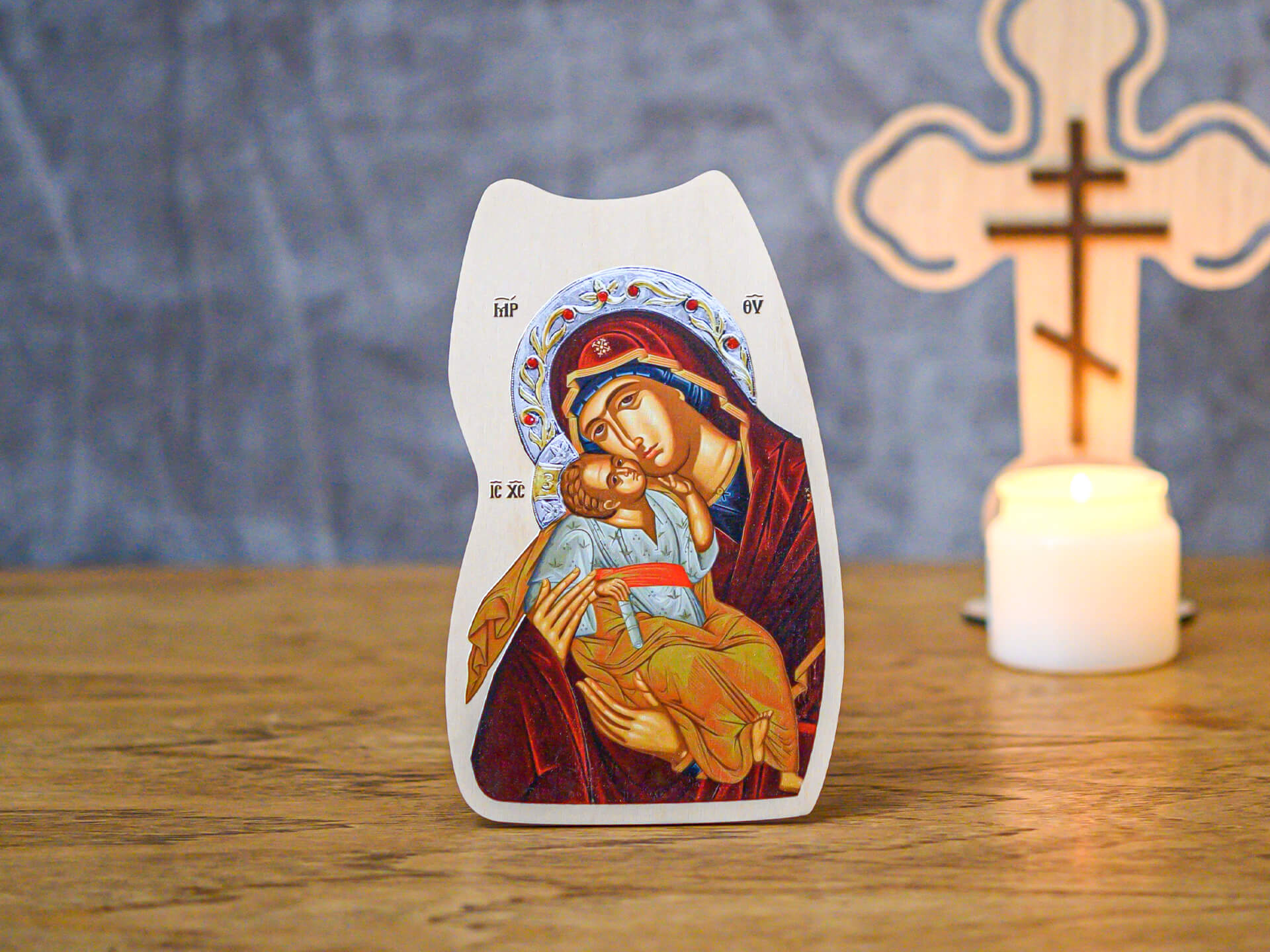 Ξύλινη Επιτραπέζια Εικόνα ”Παναγία και Ιησούς”