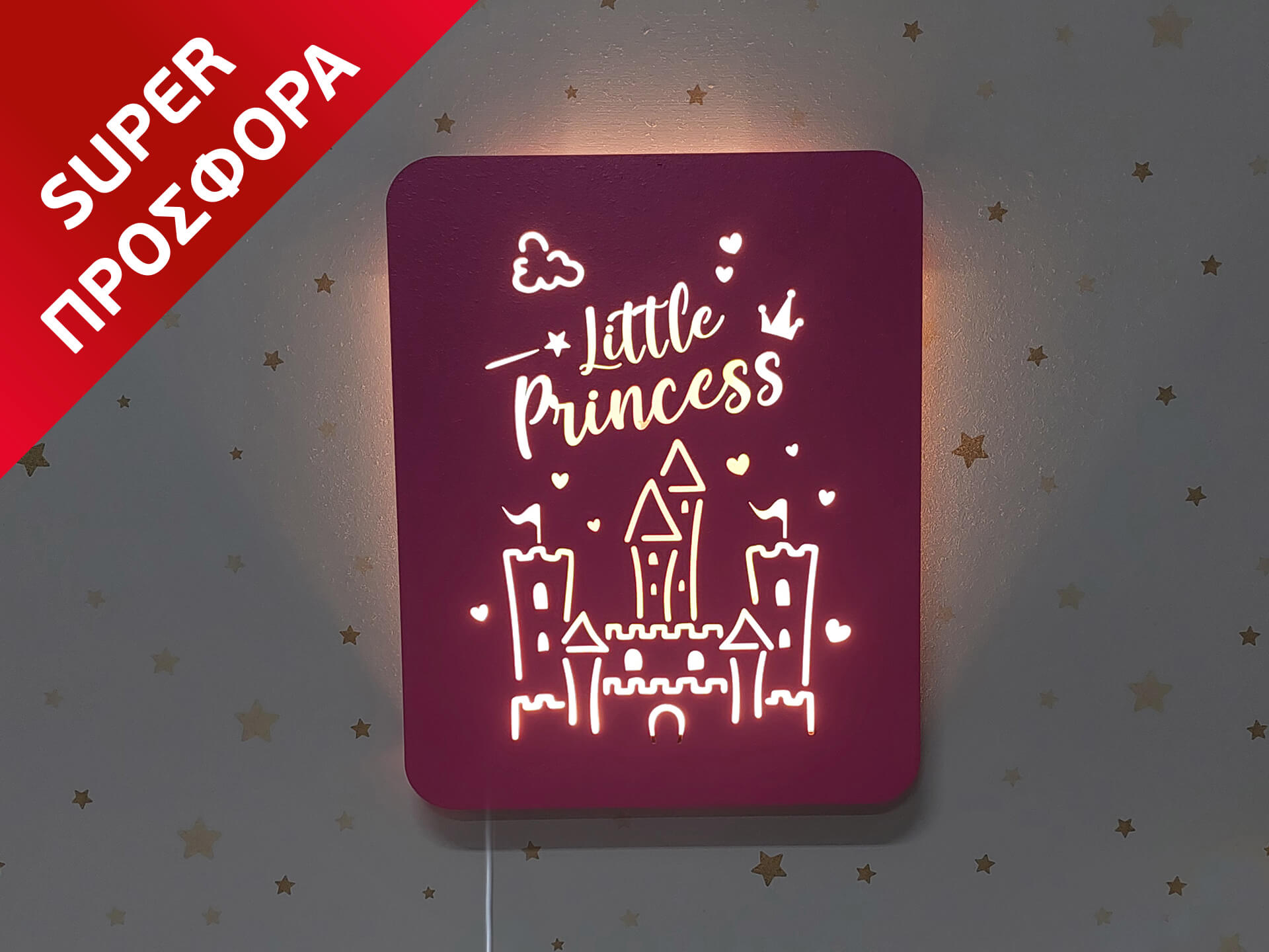 Μοναδικές προτάσεις για τη διακόσμηση του παιδικού δωματίου. Διακοσμητική φωτιζόμενη ταμπέλα little princess!