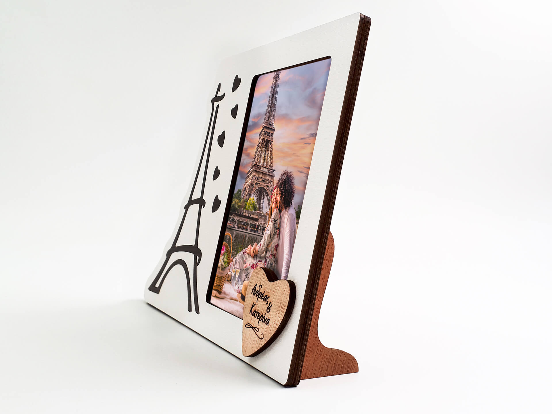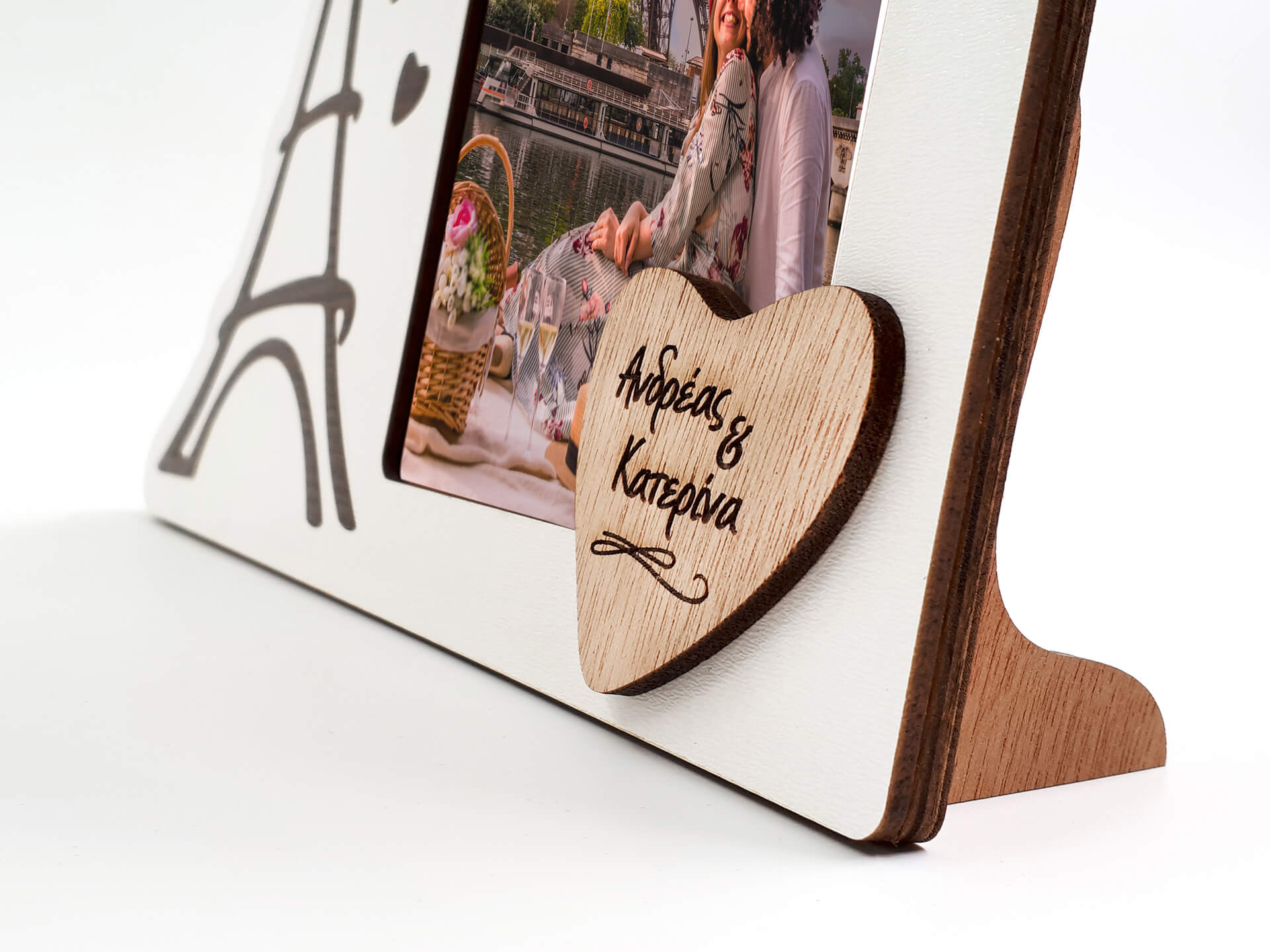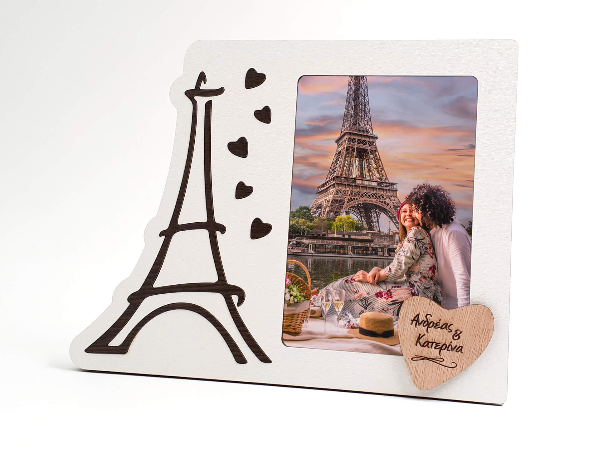 Επιλέξτε ένα ιδιαίτερο προσωποποιημένο δώρο για το άλλο σας μισό και εντυπωσιάστε! Επιτραπέζια ξύλινη κορνίζα με τον Πύργο του Άιφελ!