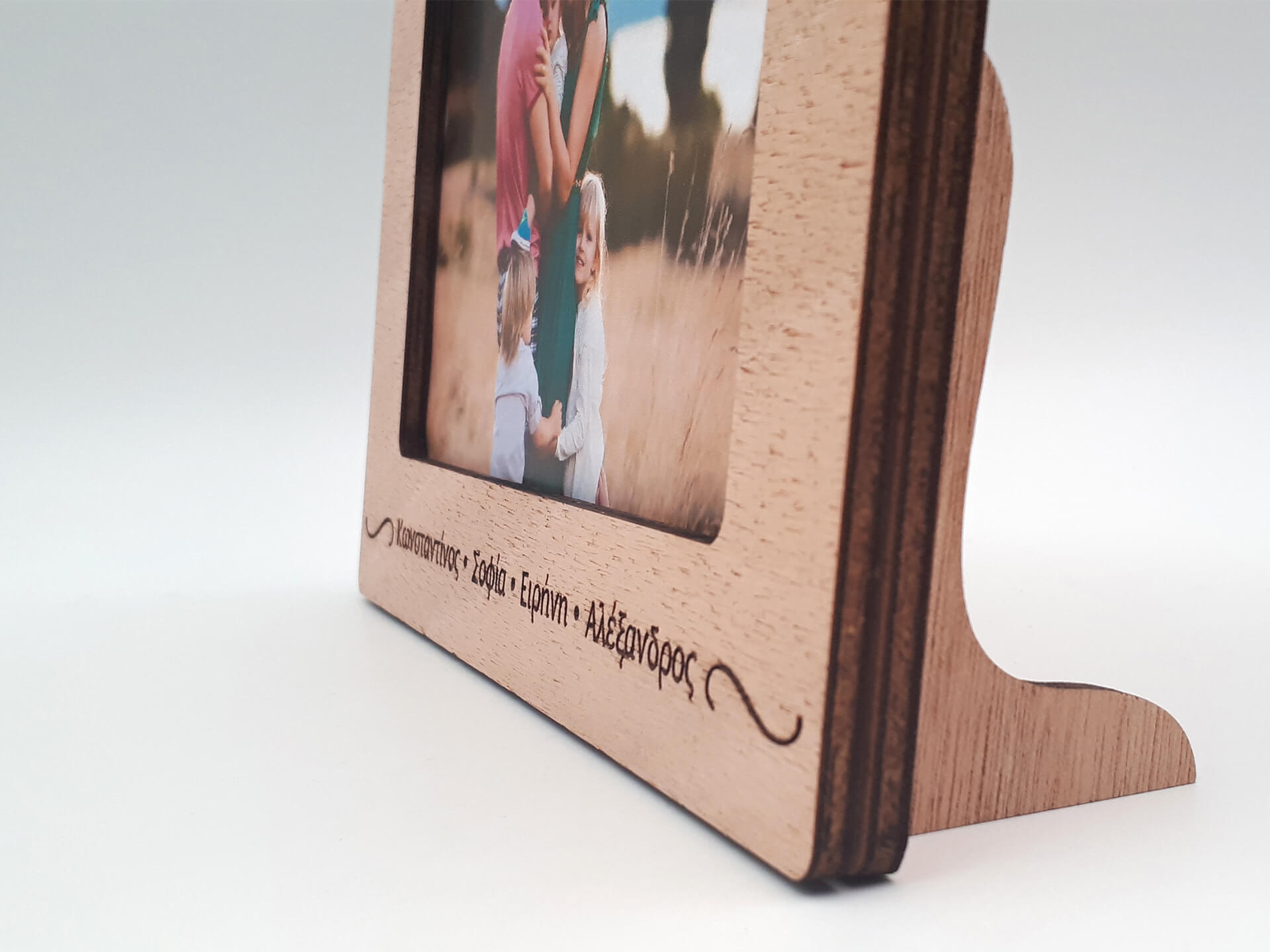 Επιτραπέζια κορνίζα στη φυσική απόχρωση του ξύλου με λευκές λεπτομέρειες. Κρατήστε για πάντα τις αναμνήσεις σας σε μια ιδιαίτερη κορνίζα ή δωρίστε την στα αγαπημένα σας πρόσωπα.