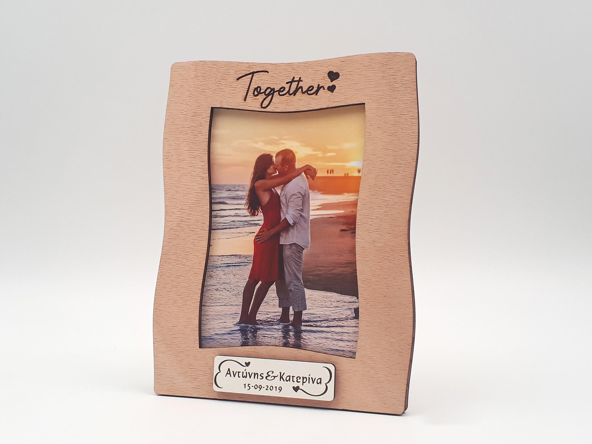 Επιτραπέζια κορνίζα στη φυσική απόχρωση του ξύλου με λευκές λεπτομέρειες. Κρατήστε για πάντα τις αναμνήσεις σας σε μια ιδιαίτερη κορνίζα ή δωρίστε την στο αγαπημένο σας πρόσωπο.